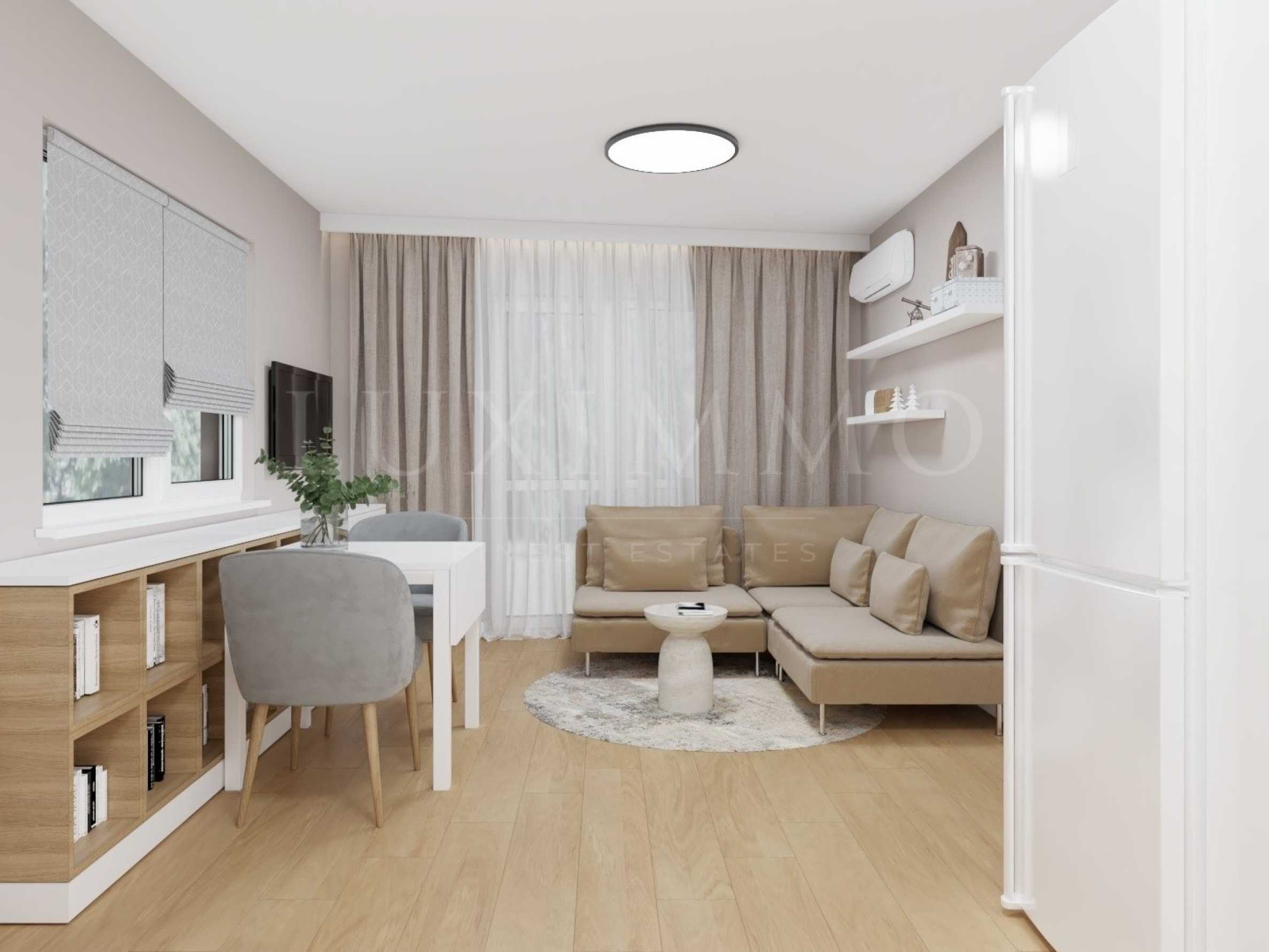 The apartment is offered according to Bulgarian Standards (on screed and plaster). The property comes with a conceptual design for furniture, which can be implemented at the request of the future owner, for an additional fee.