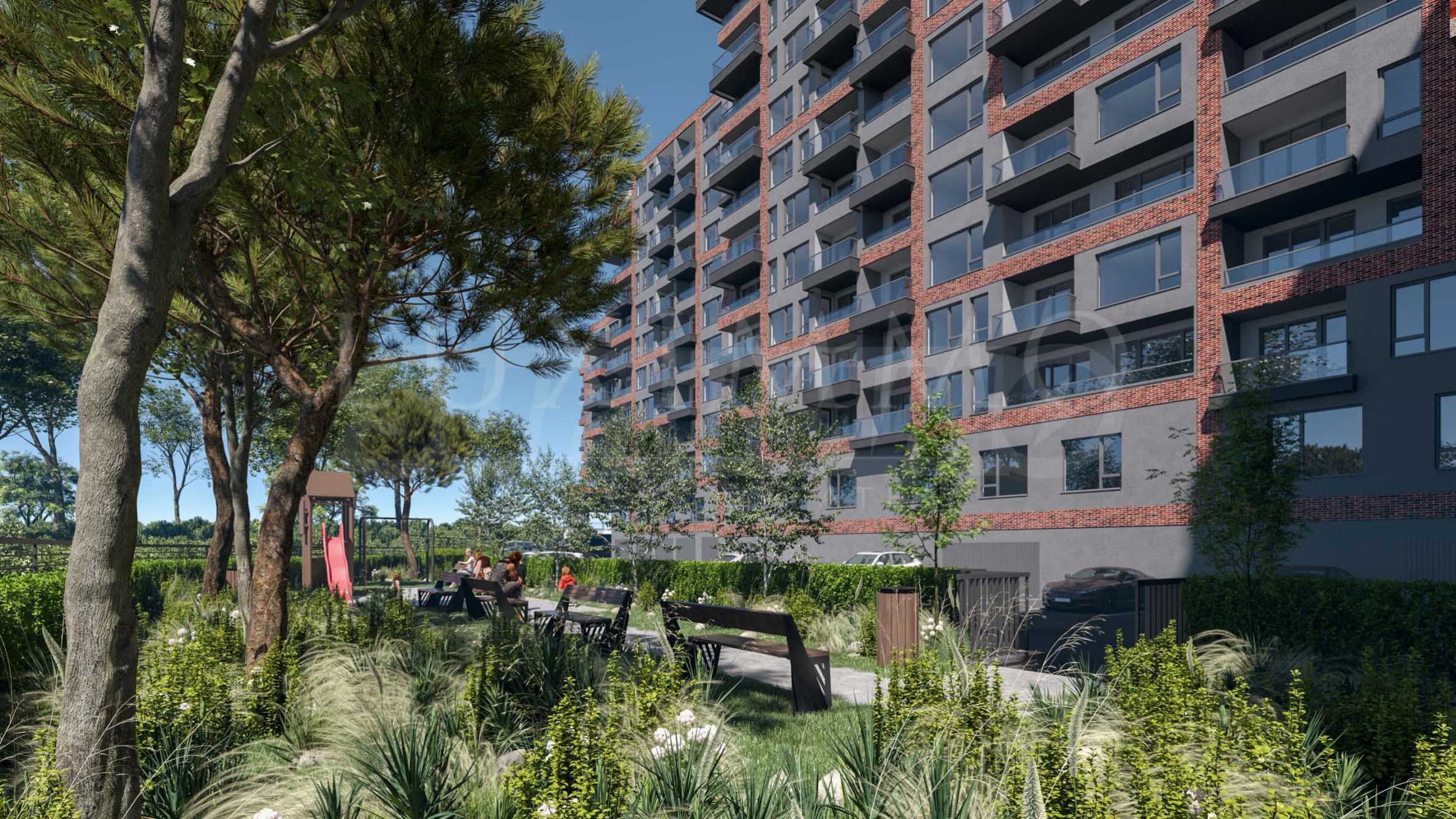 The complex is designed in several stages, of 5 buildings, will consist of residential, office, commercial space, its own park with a children's playground, underground parking spaces and outdoor spaces. The architectural appearance of the complex is decided in an original way, the buildings are attached to each other by shield walls with a park environment.