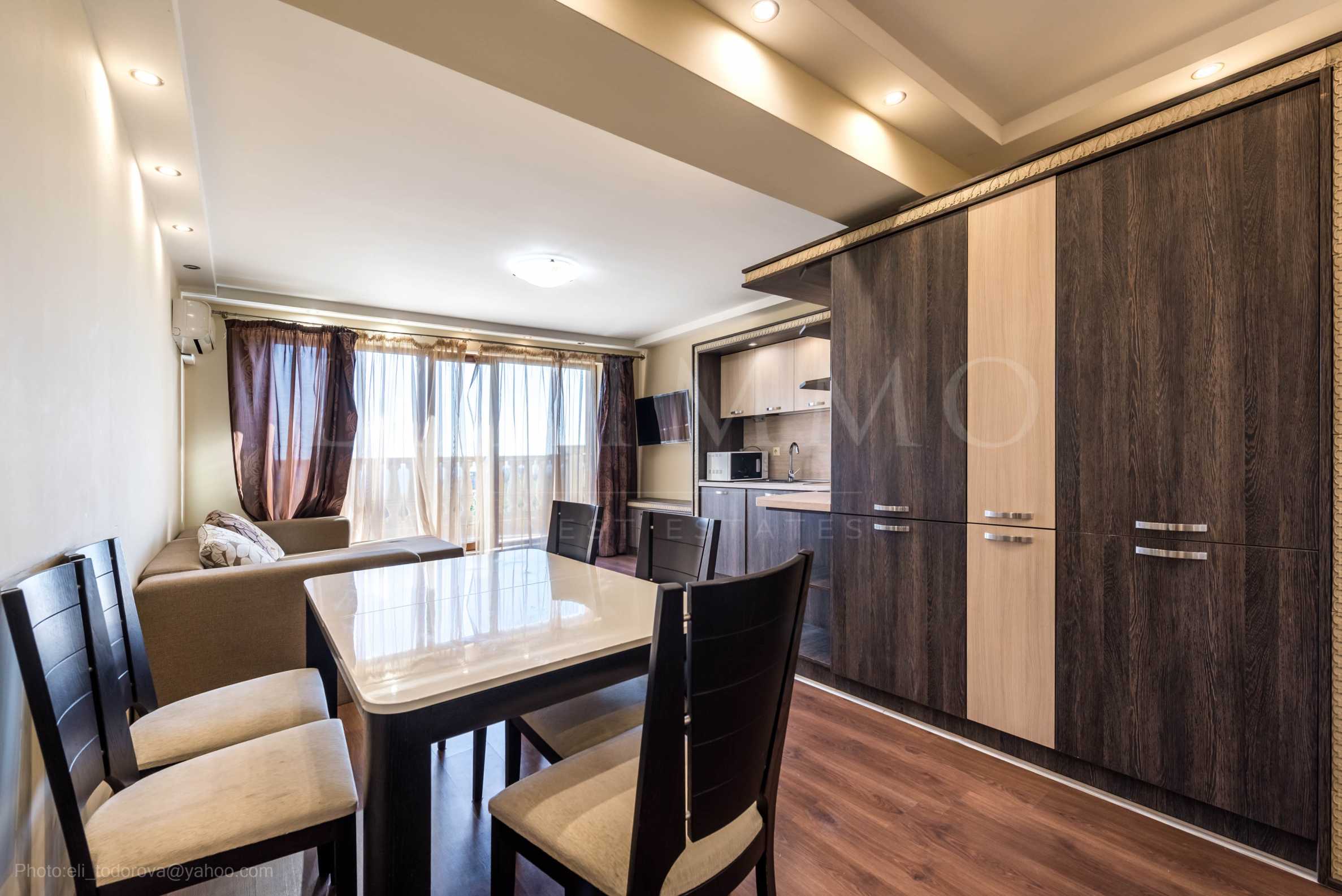We present an excellent two-bedroom apartment in a well-maintained residential complex in Chaika resort. Convenient location near the Varna Free University, within walking distance of Kabakum beach, 2 km from the Golden Sands resort, bus stop, shops, etc.