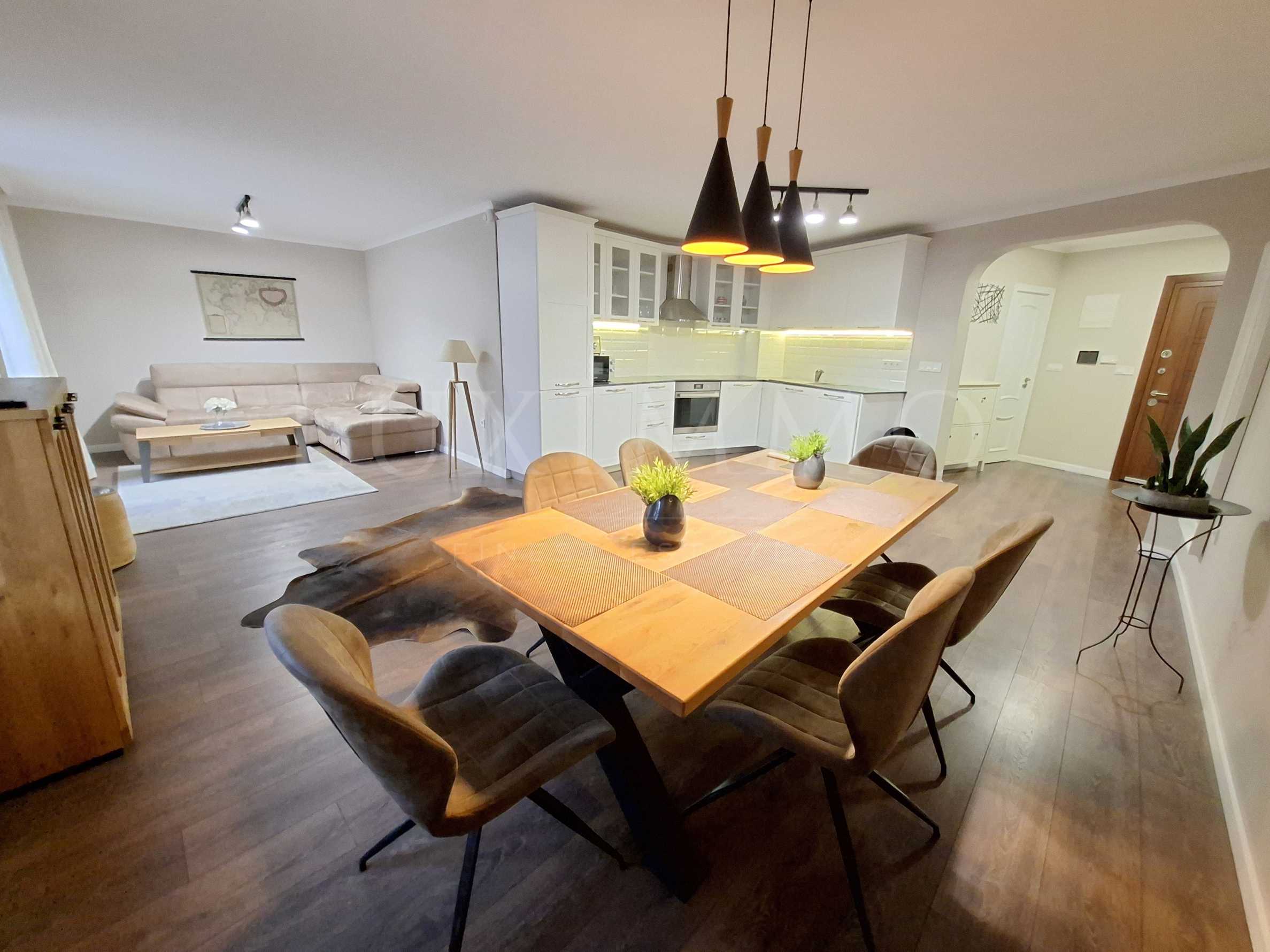 The apartment has been renovated, modernly furnished and fully equipped with high-end appliances - built-in oven and hob, refrigerator, water heater, three air conditioners, etc.