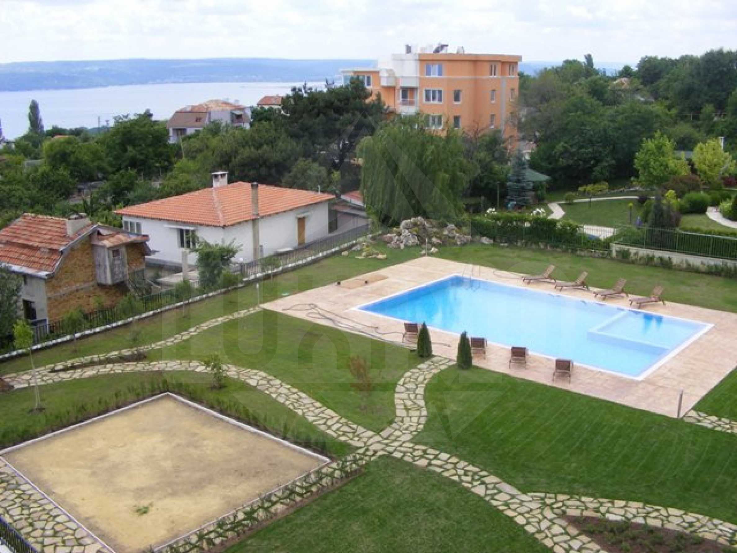 Of all the homes are lovely sea view across the Bay of Varna and the sea. The area is built with low-rise buildings and large spaces occupied by vegetation - low and high vegetation. The sea is about 1 km. the housing complex, but because of the height location offers sea views of even the lowest floors. Center of Varna (the Town Hall and Hotel Black Sea) is situated 6 km and the nearest public beaches are 3 km. the housing complex.