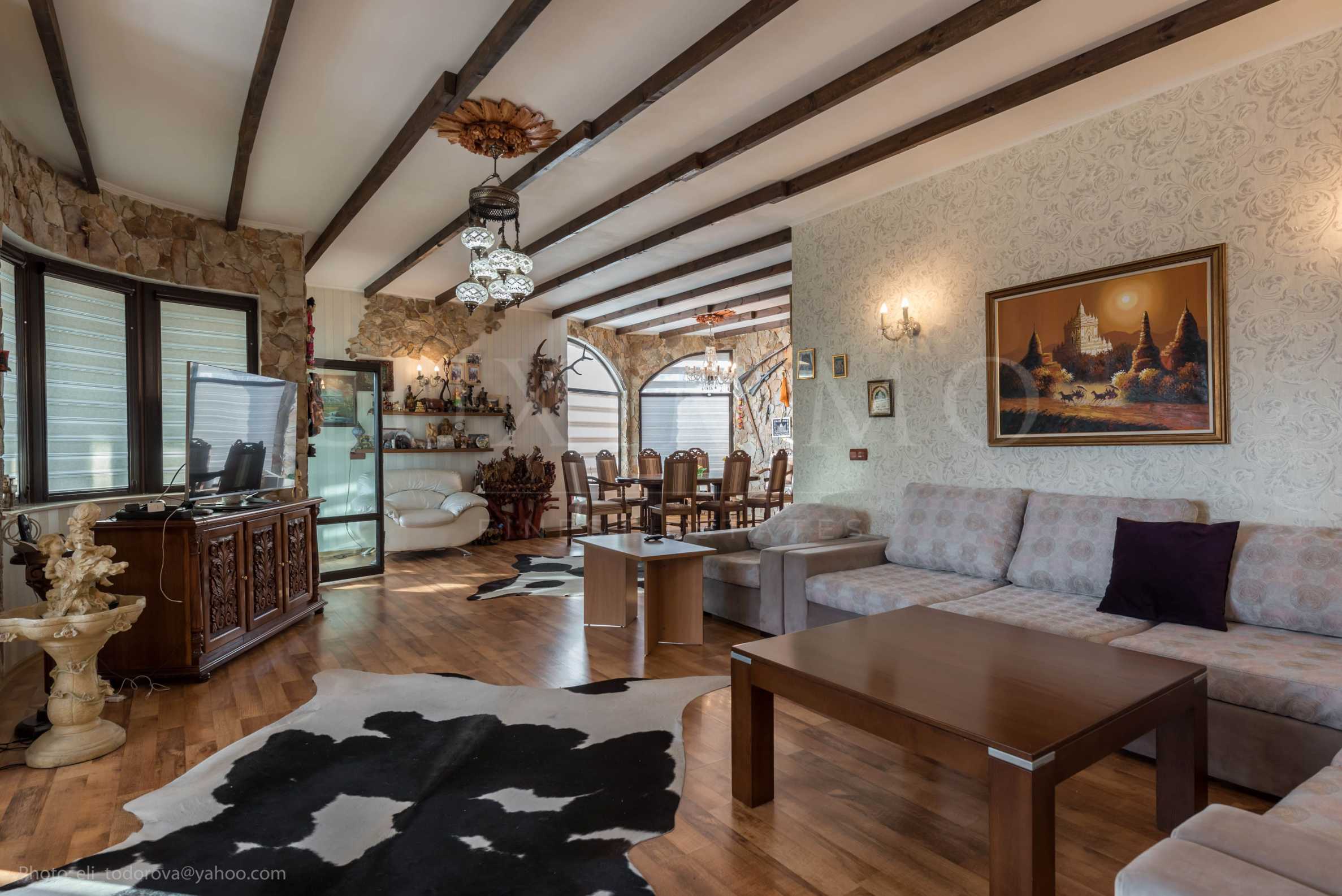 The mansion is located on an area of 1140 m2 and consists of a separate guest house with two bedrooms and its own veranda overlooking the sea garden, a main house on three floors with separate entrance and two large private apartments, a small hotel with separate entrance, separate large room intended for commercial activity. Total area - 1298.76 m2. The property has its own water source, electricity generator, installation of solar panels, heating with three boilers, two of which are for solid fuel and one running on oil.