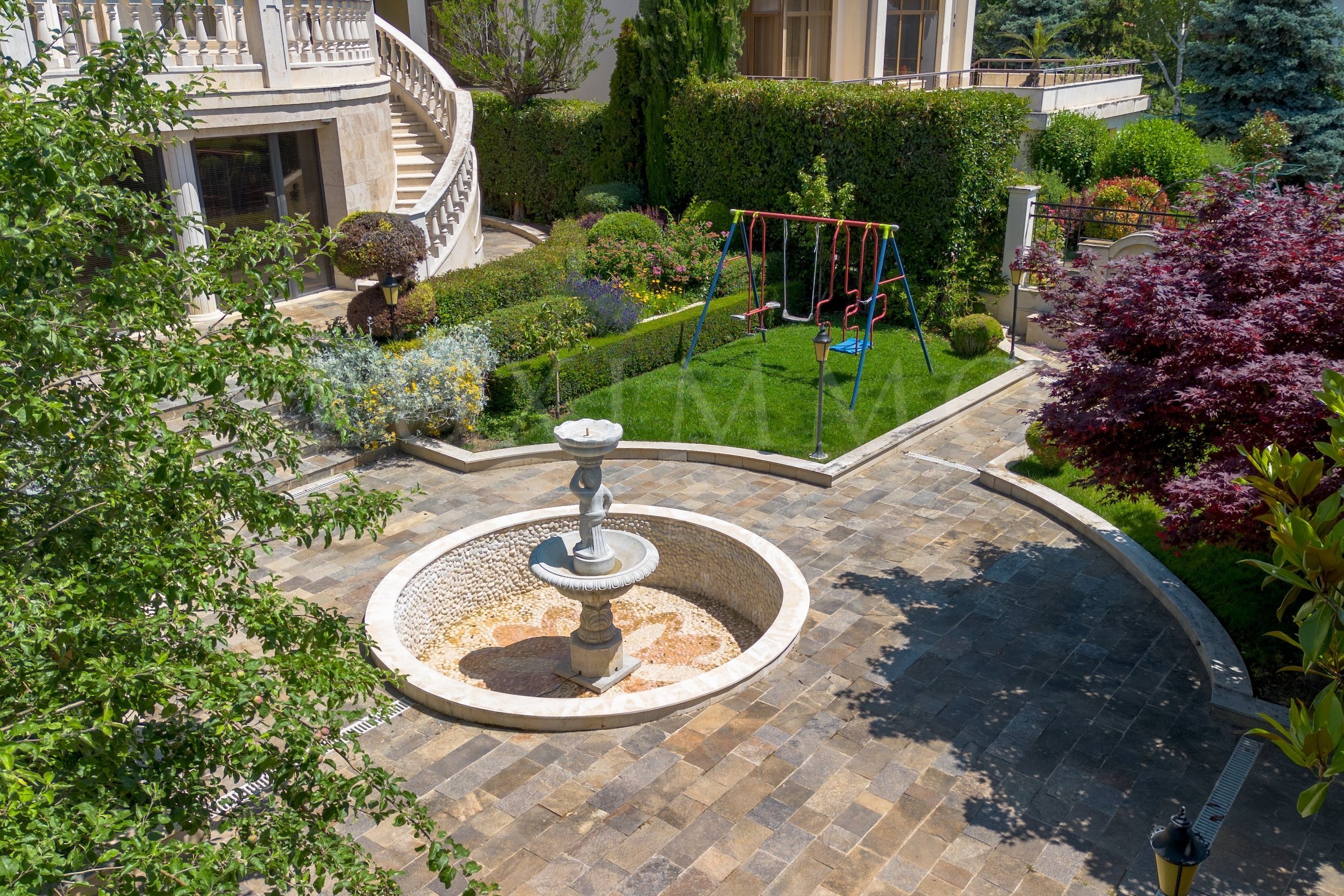 The landscaped yard with an area of 836 m2 is a true oasis of tranquility, with beautifully designed alleys, a fountain and a barbecue area, creating a perfect atmosphere for relaxation and unforgettable meetings with loved ones.