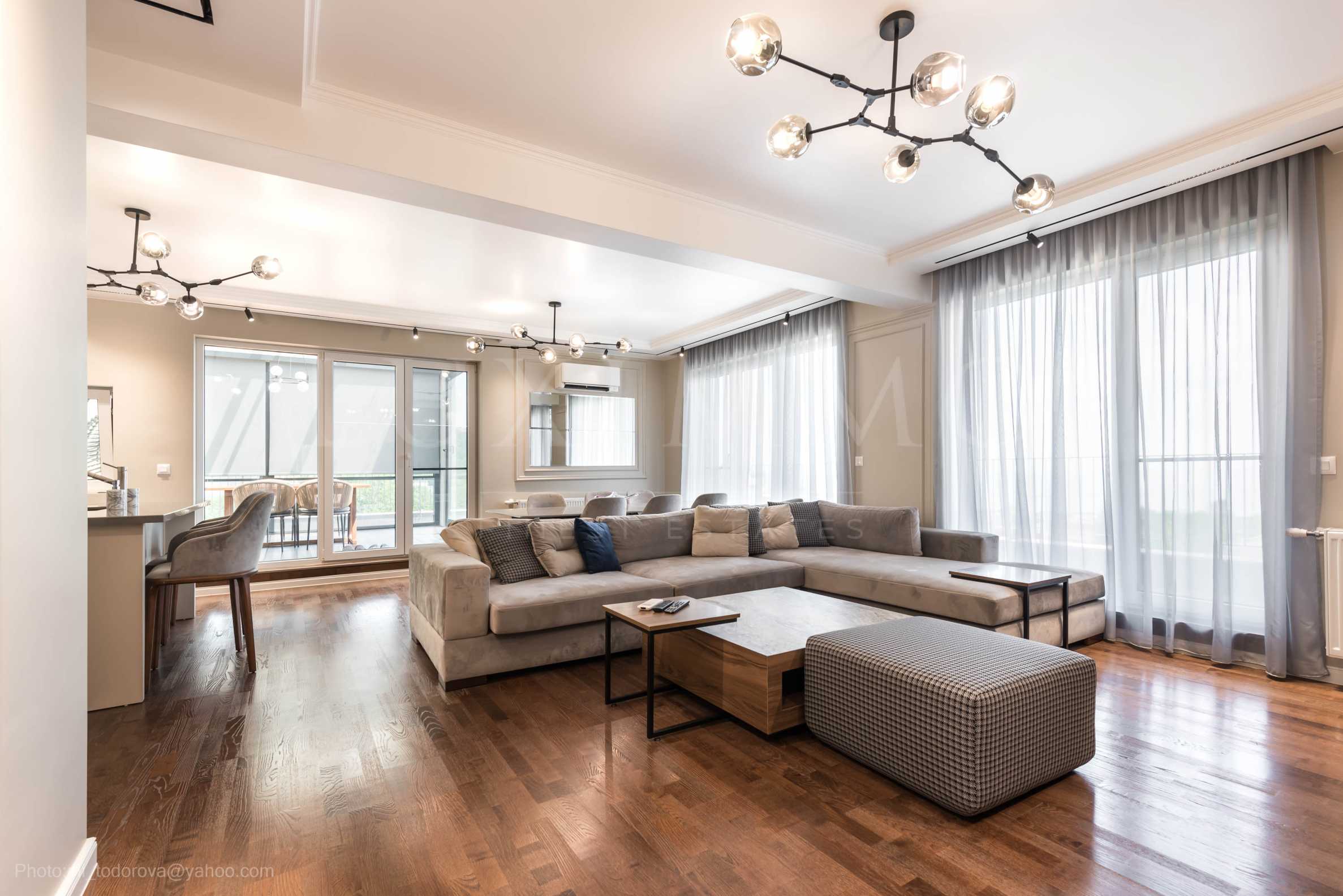 The floor coverings are of high quality - natural parquet and granite tiles. Stylish lighting fixtures have been installed.