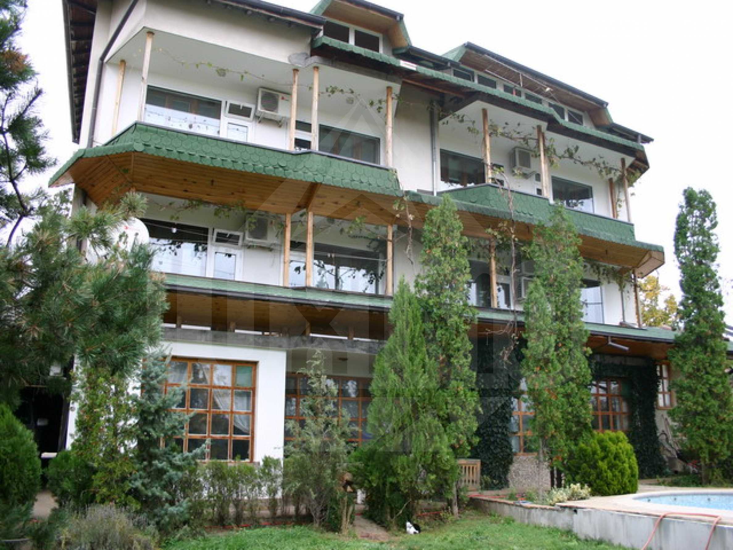 The yard is terraced, with total size of 1400 sq. m. and in it you can will find an outdoor heated pool with a volume of 95 cubic meters, length 10.5 m and a width of 4.5 m. With an installation of 4 solar panels, fruit trees, stone flooring on concrete slabs in the form of paths.