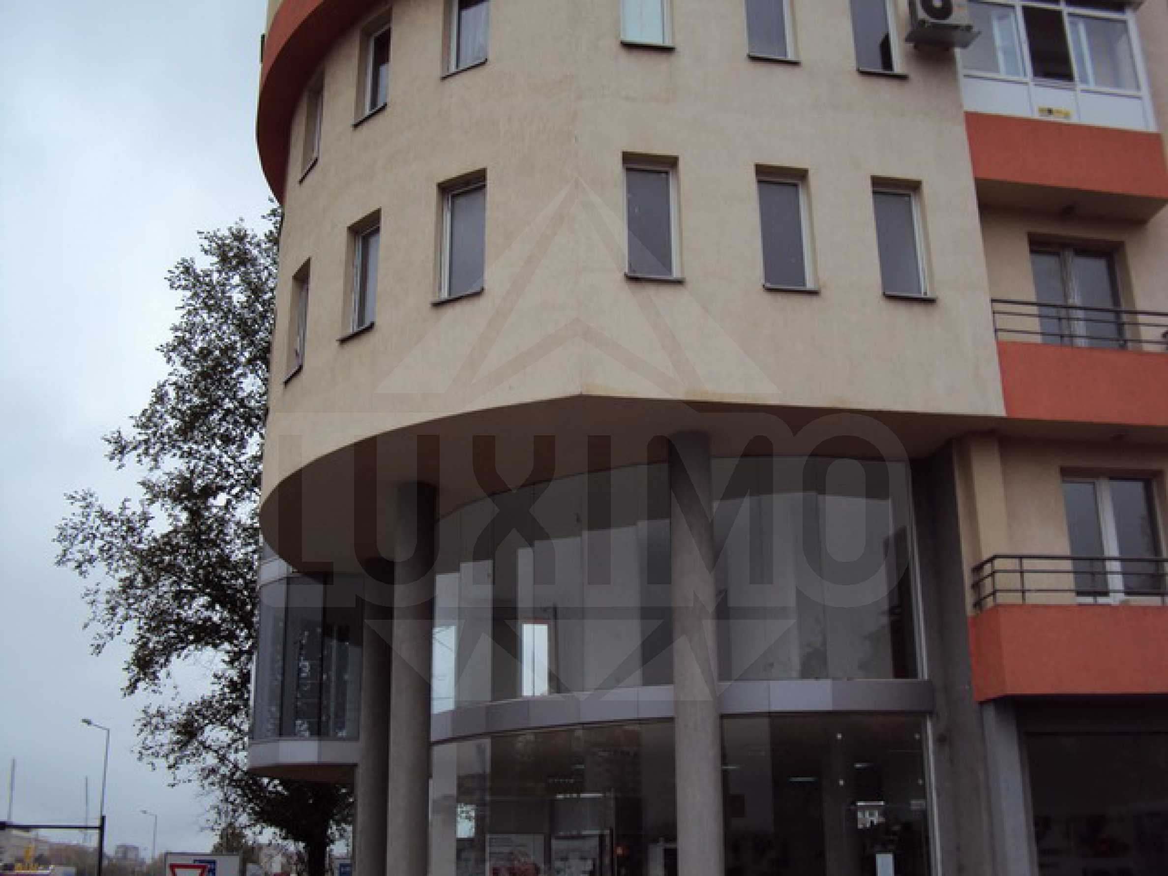 Luxurious office in a top location in the town of Veliko Tarnovo. It is situated on the first floor in a new building adjacent to the newly built road junction in to the city. The office is 75 sq.m. and has an entrance hall, bathroom, additional room, two balconies and one large room. Fully finished with large, curved glass facade from floor to ceiling. The building is visible to all traffic traveling on the main road between Sofia and Varna. The bathroom and toilet are completed, the floors in the rooms are granite tiles, the walls are painted and there are sockets for telephone, cable TV, Internet and internal music system.
