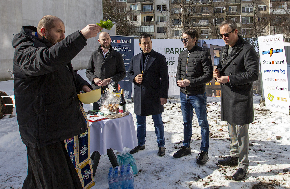 The official ceremony to mark the opening of the construction site was attended by the developers from TASKOV & STOYANOV, Lyubomir Nikolov their partner in the project, Krum Sergeev, the architect, and his design team from Studio Creative, as well as Ivo Dikov, the architect from Elite Building, contracted to carry out the building work.