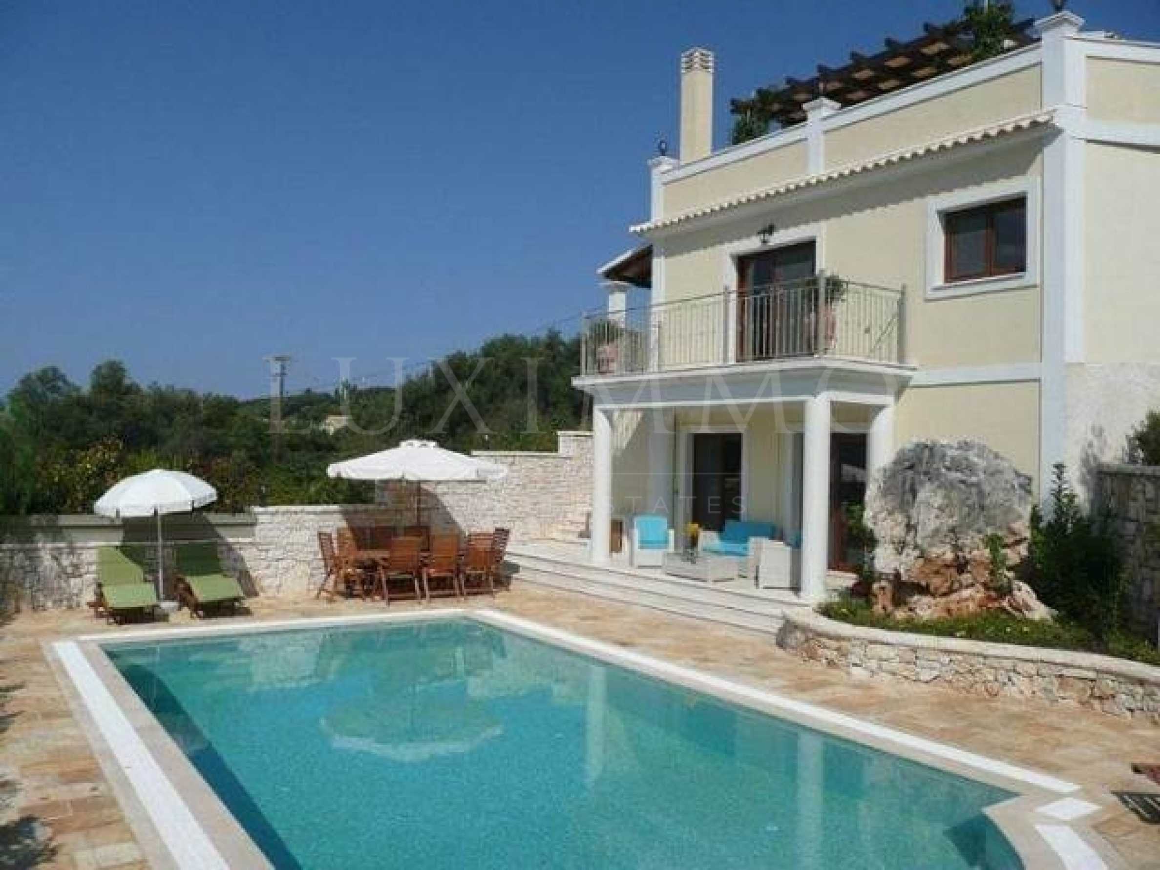 This property can become either your dream holiday house or an amazing investment opportunity since its repetitive clientele bring income during the summer season!Designed and furnished with the highest quality materials, this villa oozes sophistication and elegance and give you the ultimate holiday experience.A huge advantage of the villa is its location, combining the much wanted serenity of a secluded location with the convenience of having close proximity to Kassiopi’s village centre and being within walking distance to the beach and all amenities.With the massive private pool area, 2 large verandas, balcony and terraced areas plus lovingly designed gardens, this villa gives you every opportunity to enjoy the climate and the views of Kassiopi village, sweeping coastline, Byzantium castle and impressive mountains whilst relaxing.The private pool area is the ultimate place to relax, since you can enjoy the sun from dawn till dusk giving you unsolicited sunbathing time, a benefit that not all villas have. Every outside area is ornamented by flowers, grass and greenery.Built in 3 floors, this property has ample space to sleep 8 people very comfortably. The ground floor has three generously sized en suite bedrooms (one double bed and 2 with twin beds), bright and airy with ample wardrobe space. Two of the bedrooms lead straight onto the pool area. On the top floor is the master en-suite bedroom with a huge veranda and comfy seating area.The kitchen is elegant and fully functional. With its own breakfast table and veranda doors out onto the first floor terraced area, this room is perfect place to begin your day.The living room is a modern living space with terrace doors leading to a large veranda overlooking the pool.