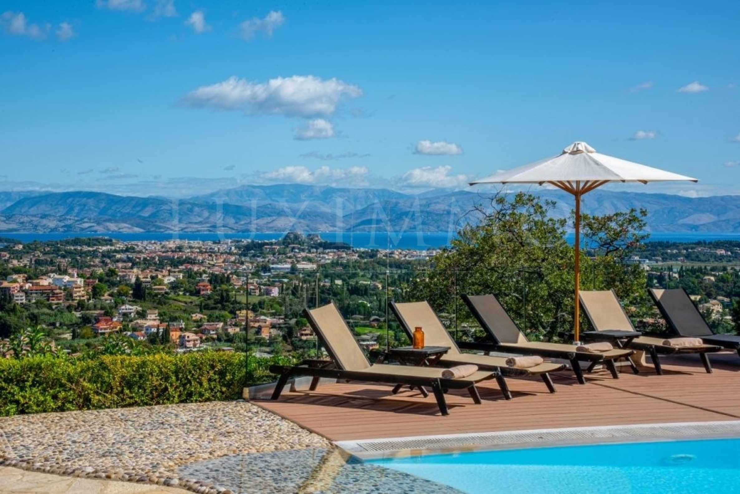 The distance from Corfu town is (approx) 5km. and the nearest beaches are (approx) 9km.
