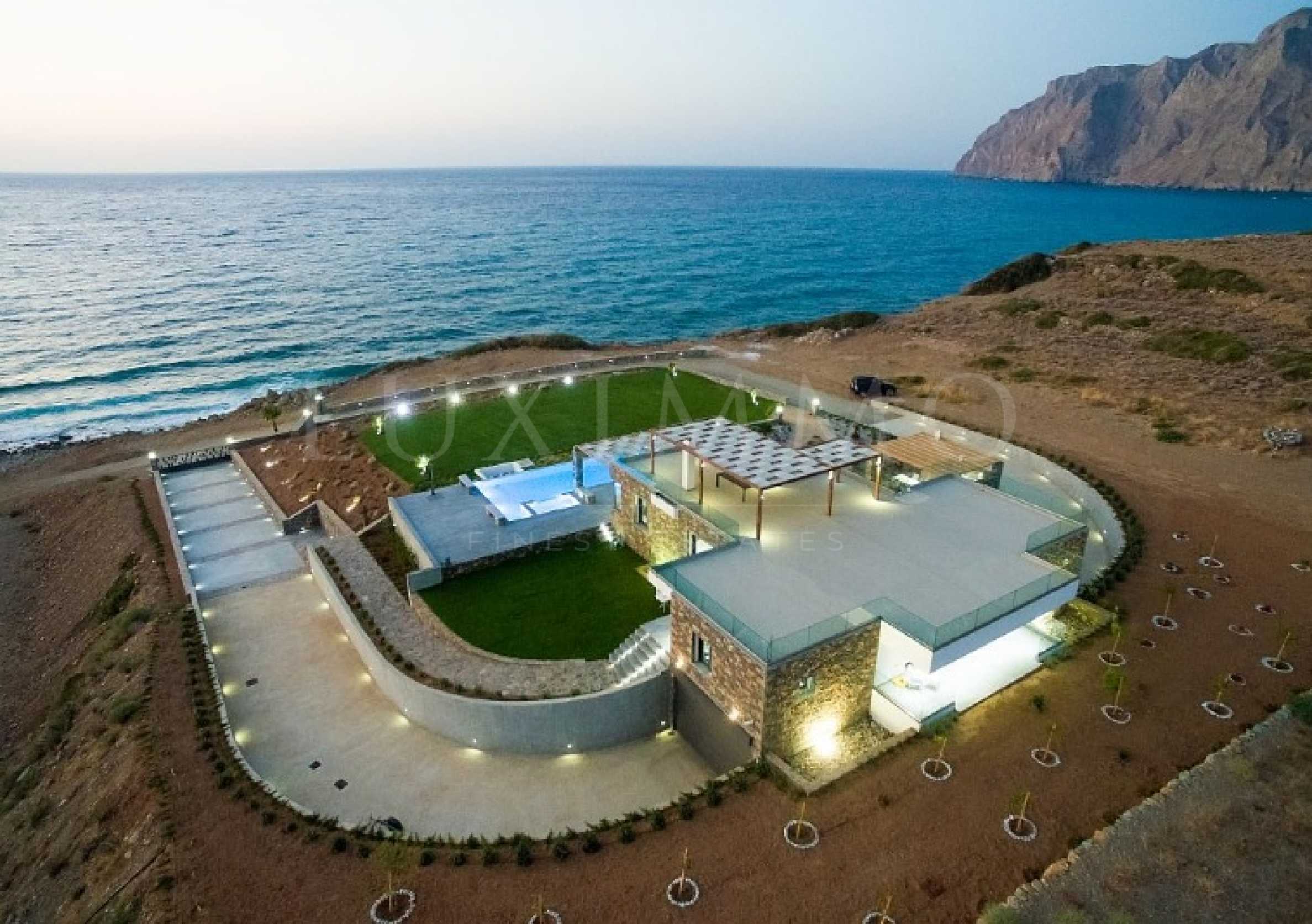 The interior decoration can be characterized as an apotheosis of minimalism, consciously deviating from the classic and traditional model found on the island, fully adapted to the modern way of life. The beautiful swimming pool looks like a natural extension of the sea, offering the opportunity for a relaxing break during the hot summer months. Especially cozy is the place for eating, located on the roof, ideal for romantic evening under the starry sky.