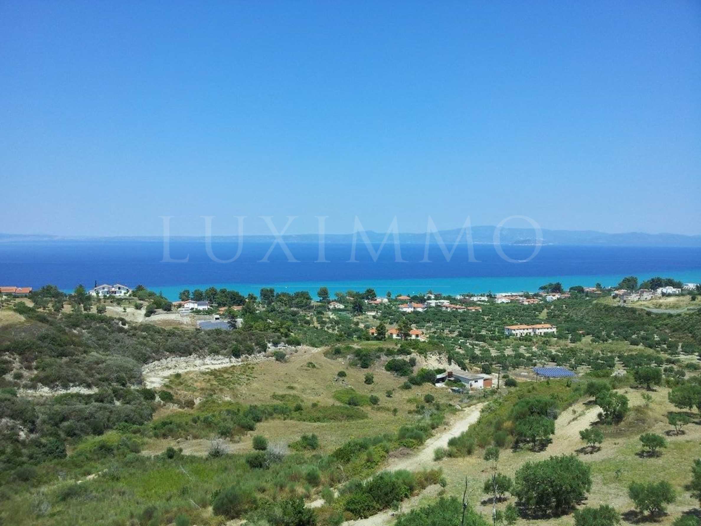 Plot in Kassandra, Halkidiki, in a unique, panoramic location with magnificent view to the sea. It is only 750 m from a beautiful, sandy beach. The plot is complete and buildable and is ideal for residential constructions of any kind.