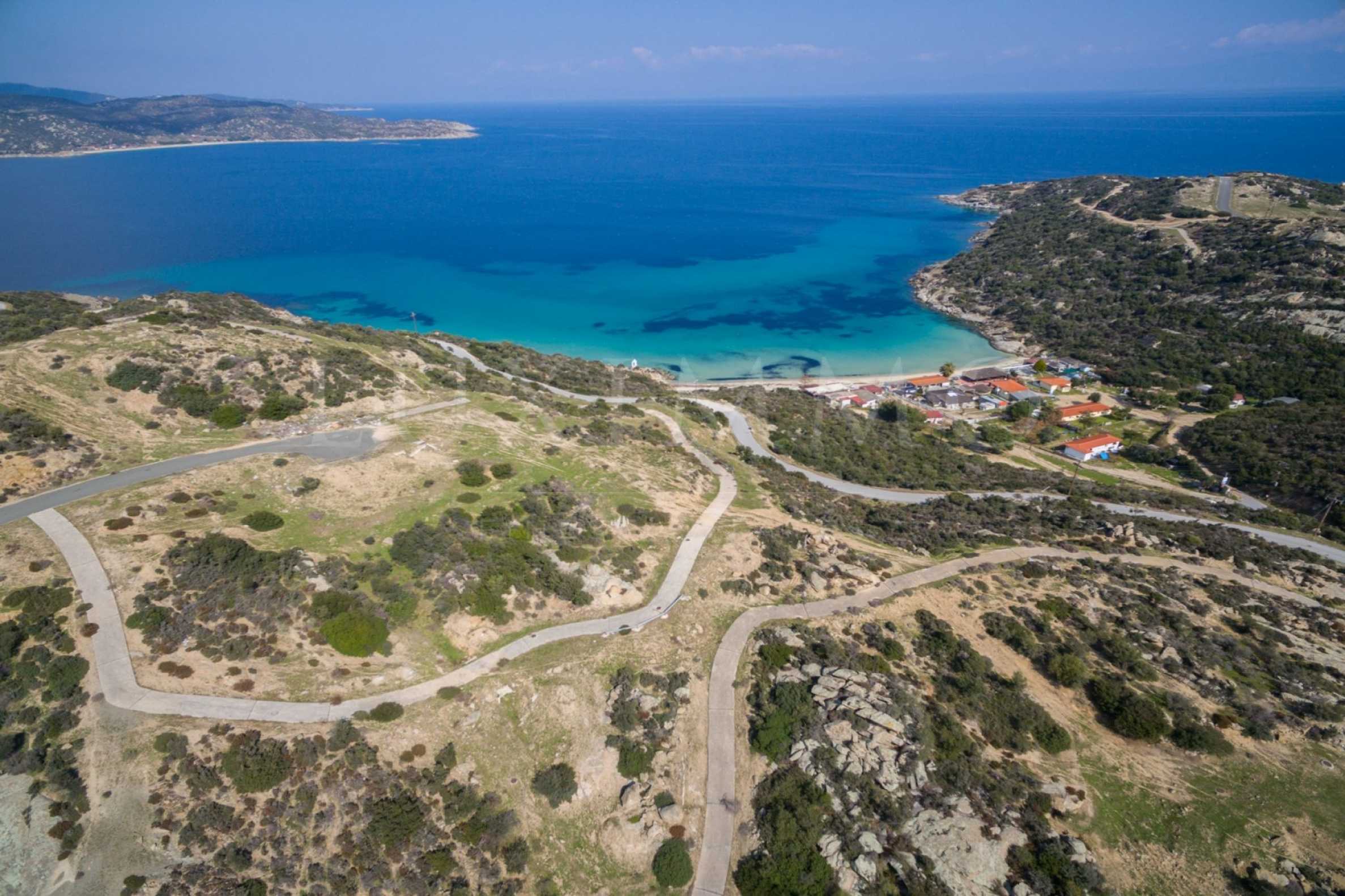 Corner,slanted plot,500 m², in Sithonia,Halkidiki with unobstructed permanent view and with an eastern orientation.The property is only 100m. away from a beautiful beach and faces the main road.The plot is complete and buildable(120m² can be built).The property is perfect for the construction of a villa.