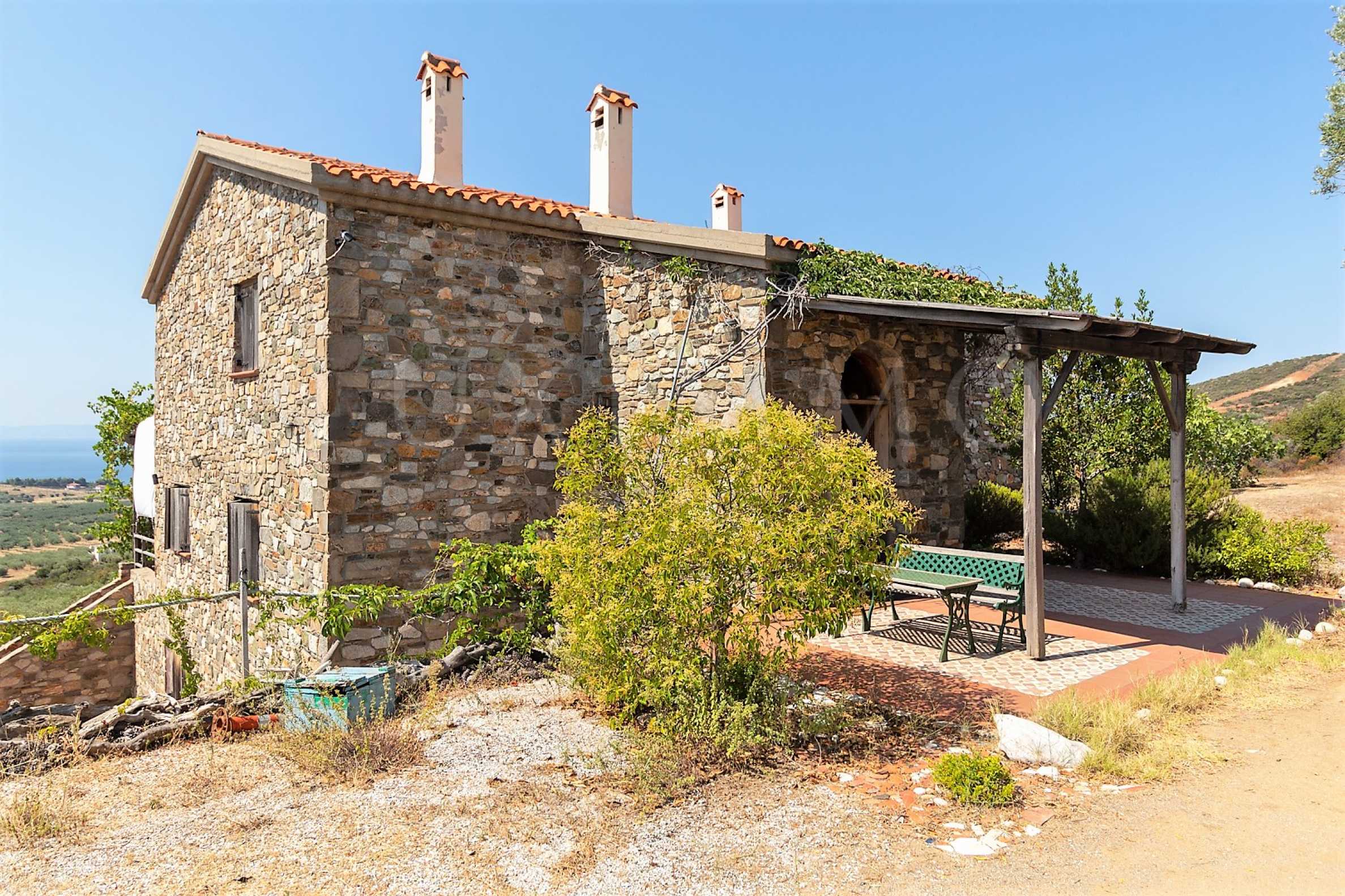 We present to you this unique Tuscan-style residence in Sithonia, Halkikii. The villa is built entirely of natural materials, stone from the Parthenon, chestnut wood from Mount Athos, the walls are deliberately plastered with mortar to enhance the effect of Tuscan authenticity, in addition, these natural and high quality materials act as a natural insulation that supports constant temperature in the cottage winter and summer. The property includes 14 acres of land, 4 of which are olive groves.