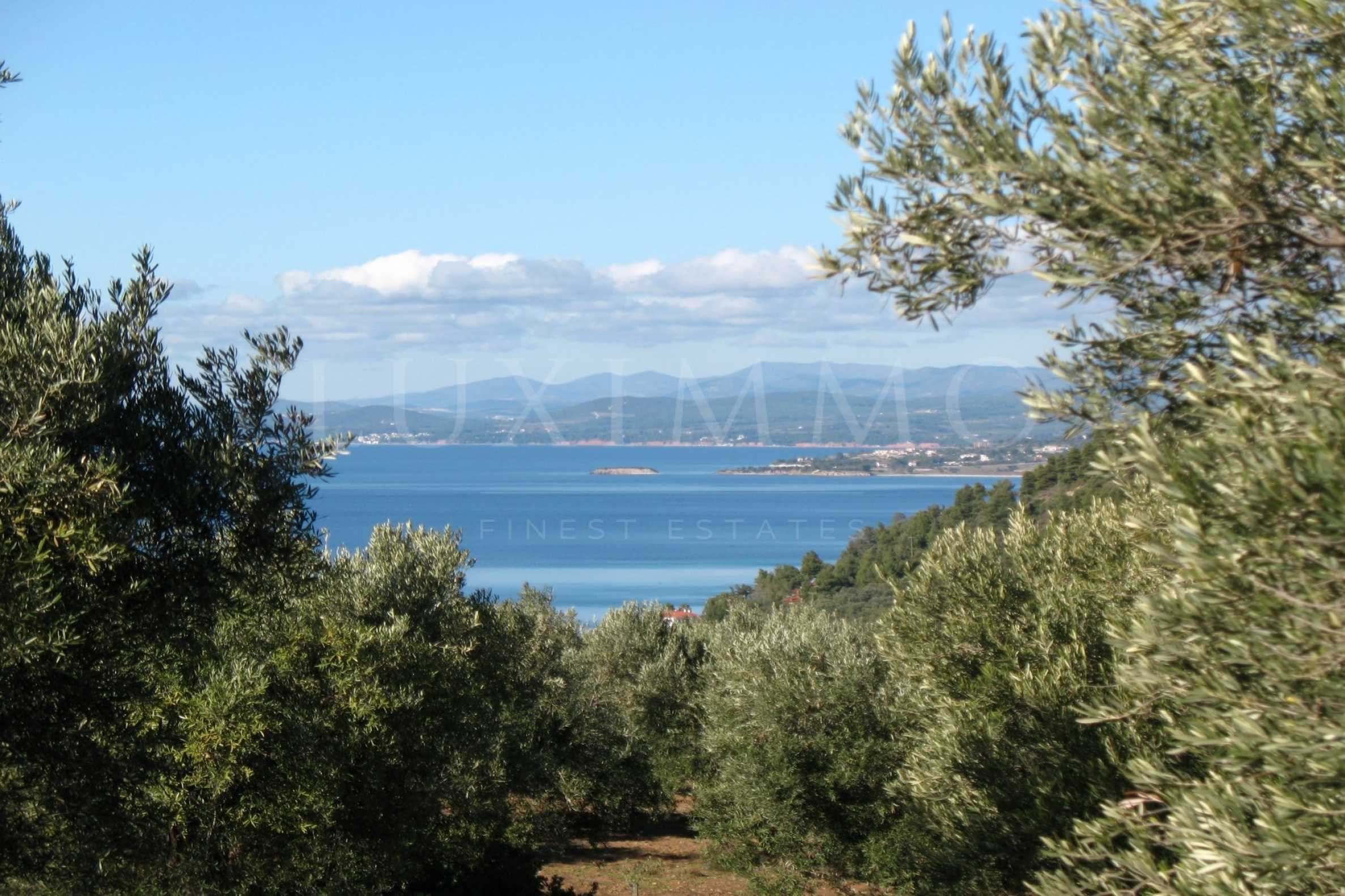 Amphitheatrical field, 4099 m², in Sithonia,Halkidiki with unobstructed permanent sea view and with a western orientation.The property is complete,buildable and has an active building licence.The field is perfect for the construction of a villa and professional usage.