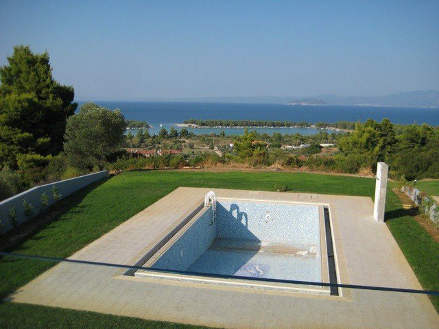 New luxurious villa in Kassandra Halkidiki, big garden, fireplace, swimming pool, parking place and wonderful sea view.
