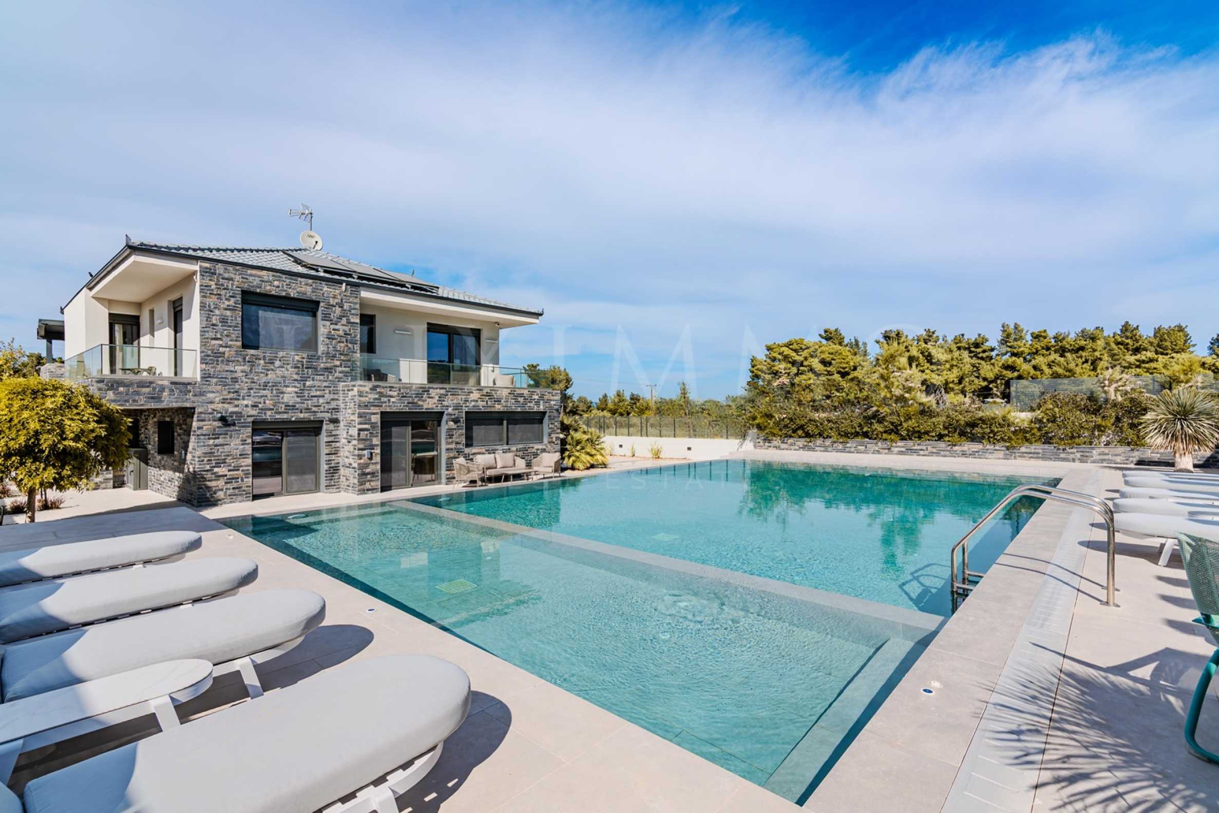 Built in 2023, the villa has an energy class of "D" and a captivating open view of the endless horizon. The stylish aluminum windows and high-quality faience flooring give it a contemporary look, while the armored entrance door and alarm system guarantee your peace of mind and security.