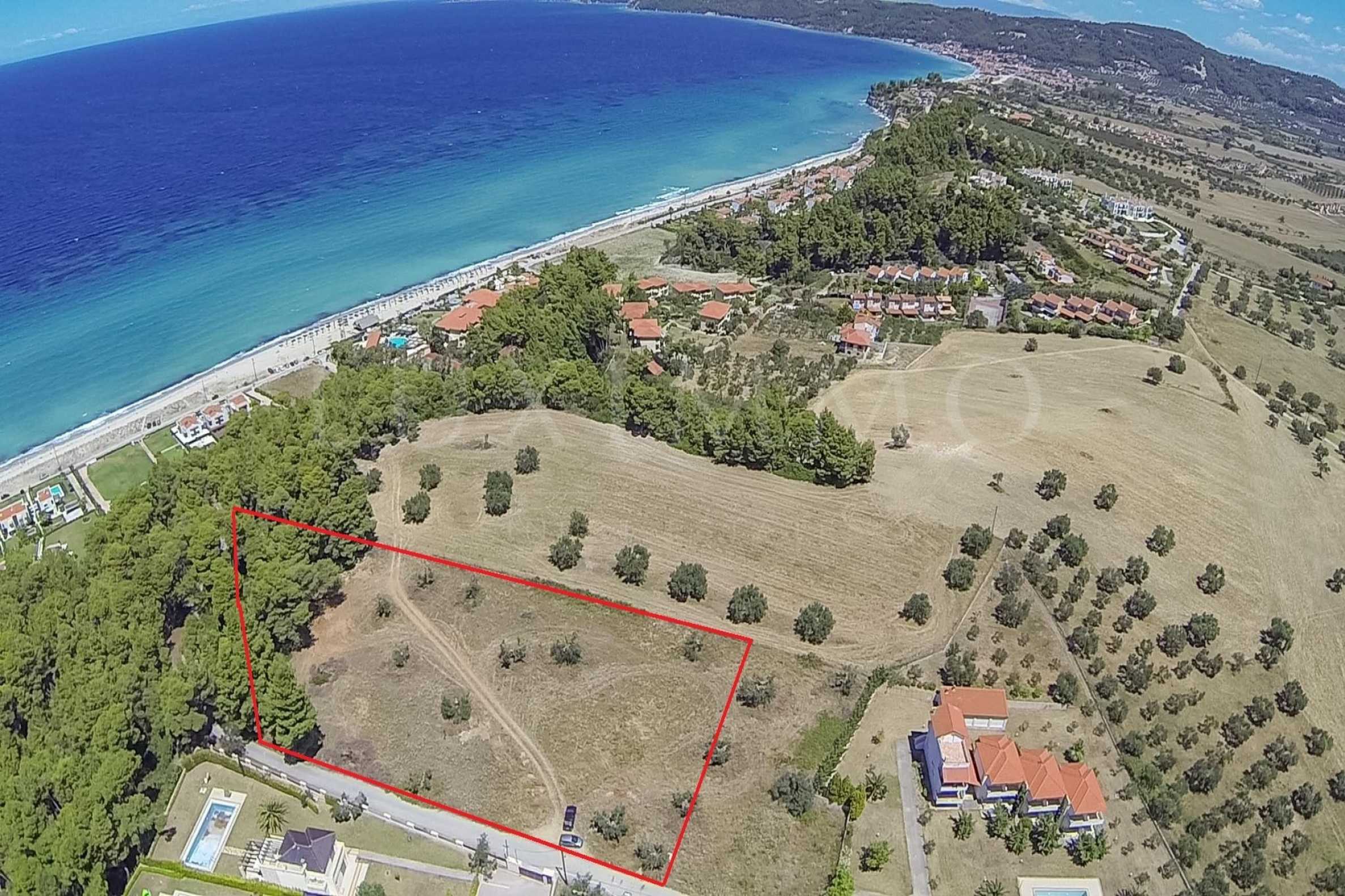 Field in a beautiful area of Kassandra, Halkidiki, 8.450 sqm. It has a faade with 128 m length on the road and is only 240 m away from the beach. Includes 1400 sqm private forest. The field is complete and buildable and is ideal for any type of residential construction. It is also appropriate for a hotel unit construction.