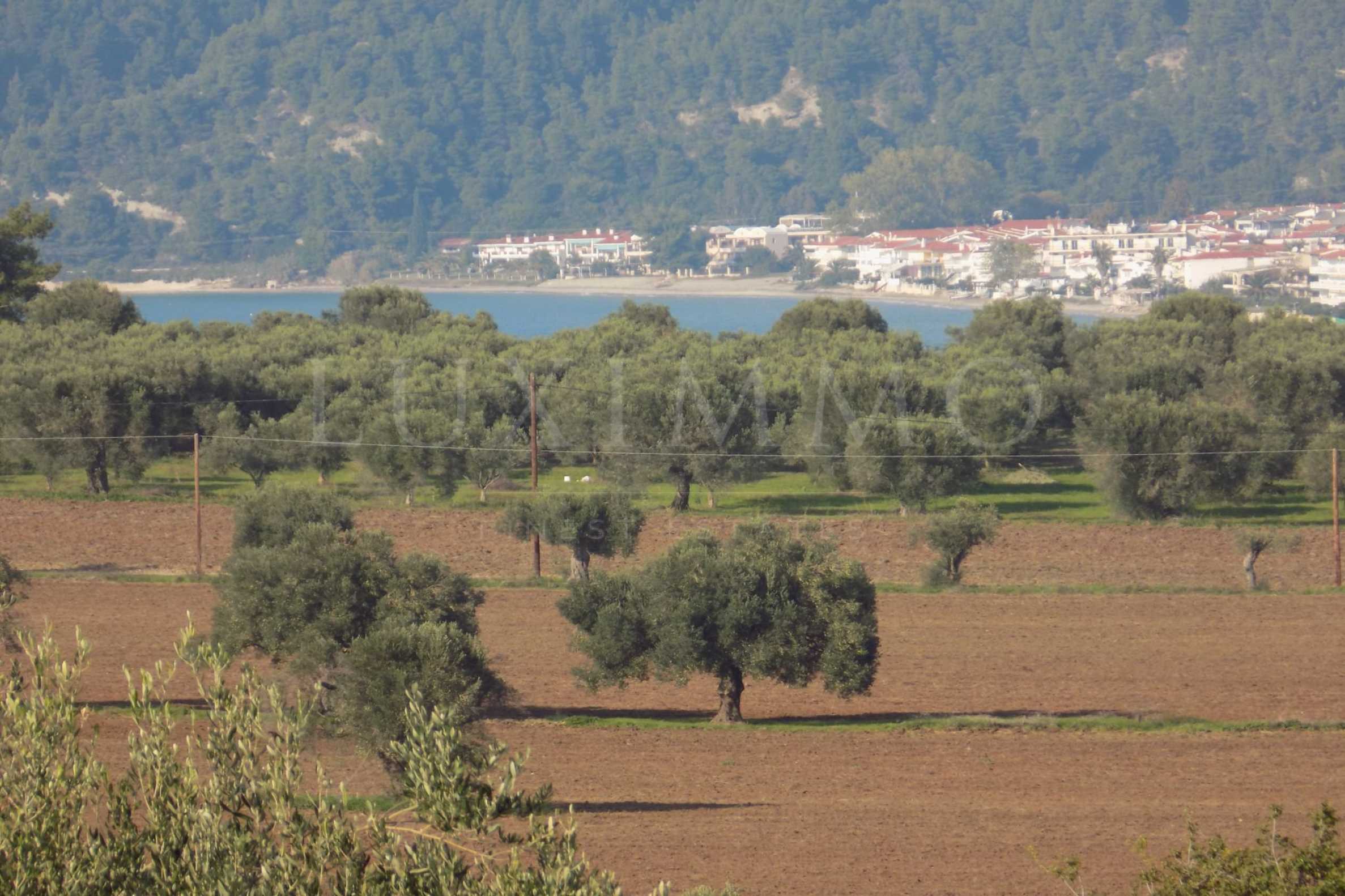 Field in Kassandra, Halkidiki, 5300 sqm. It has amazing, unobstructed view with eastern orientation and is located in one of the most beautiful areas in Kassandra, close to the beach. It is a corner property with a facade to the street, and includes an olive grove. The field is fenced, complete and buildable, ideal for the construction of houses, one single detached house or even for commercial use.