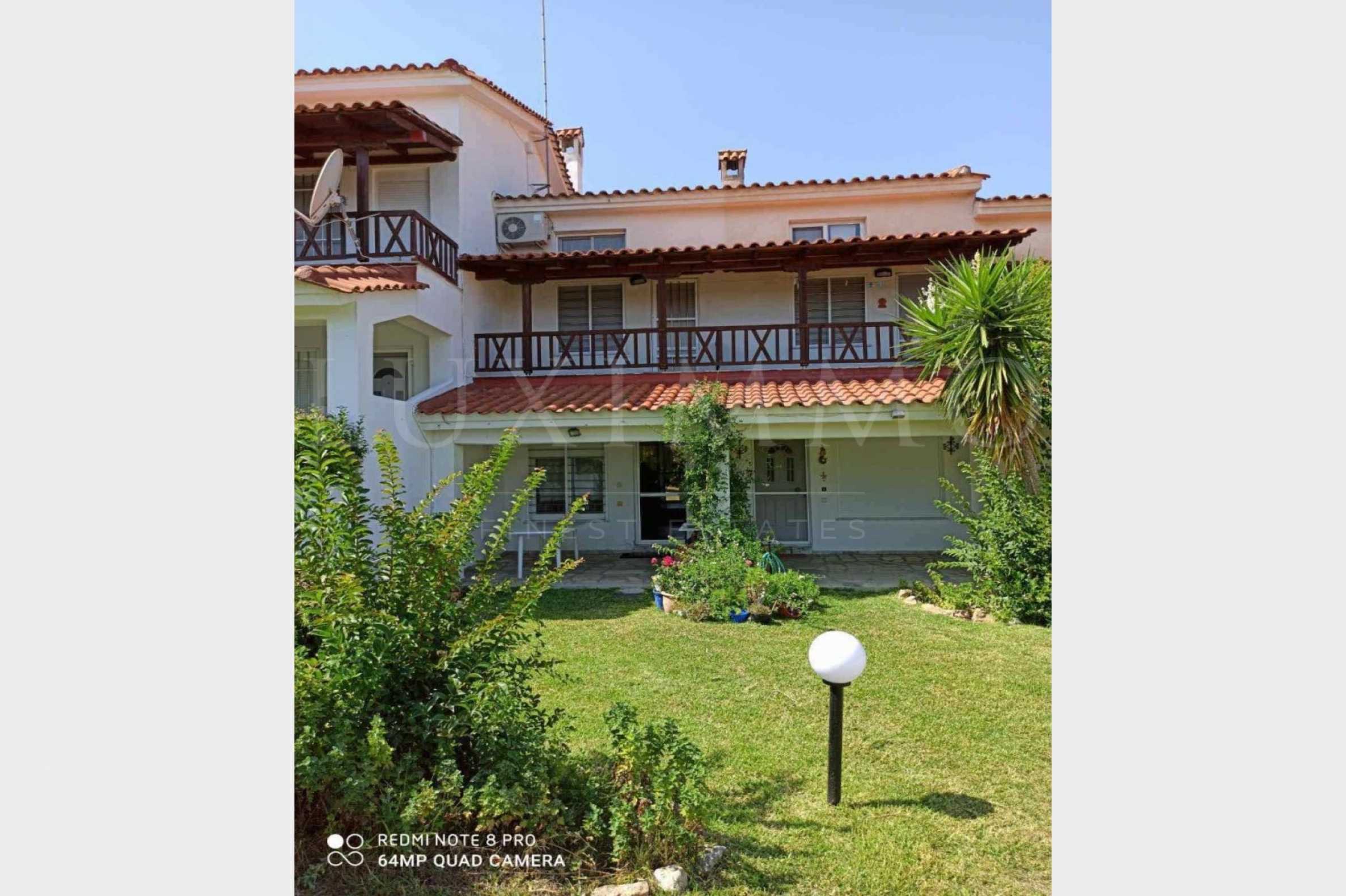 Maisonette in a complex, in Kassandra, Halkidiki, in an ideal location for anyone who is looking for tranquility. The property is split in three levels, consisted of a living room connected with the kitchen, two bedrooms, a bathroom, a wc and the attic. The maisonette is one kilometer away from the best beach of Kassandra and two kilometers away from the center of the village. It has aluminum joinery, fireplace, air conditioning and a parking space.