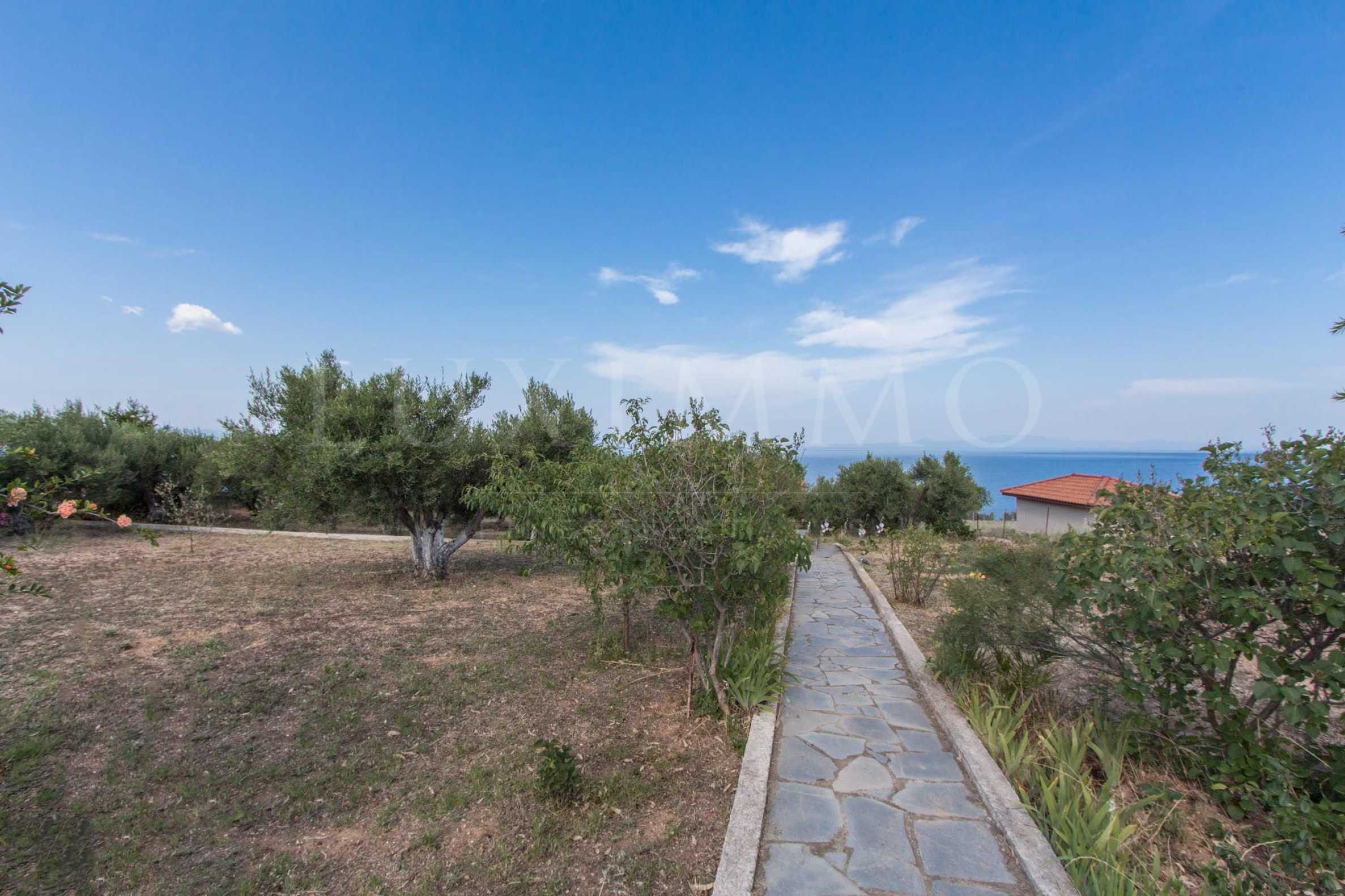 Detached house in Kassandra, Halkidiki, on the first line. It is located on a panoramic location with gorgeous view to the sea and private access with stairs to the beach, which is only 200 m from the house. The land is in total 2, 5 acres and includes a building of 101 sqm with two bedrooms, living room with fireplace, kitchen and a bathroom, whilst there is also a storage room 15 sqm and an outdoors toilet. In the yard there is a gazebo, barbecue, olive trees and a parking lot.