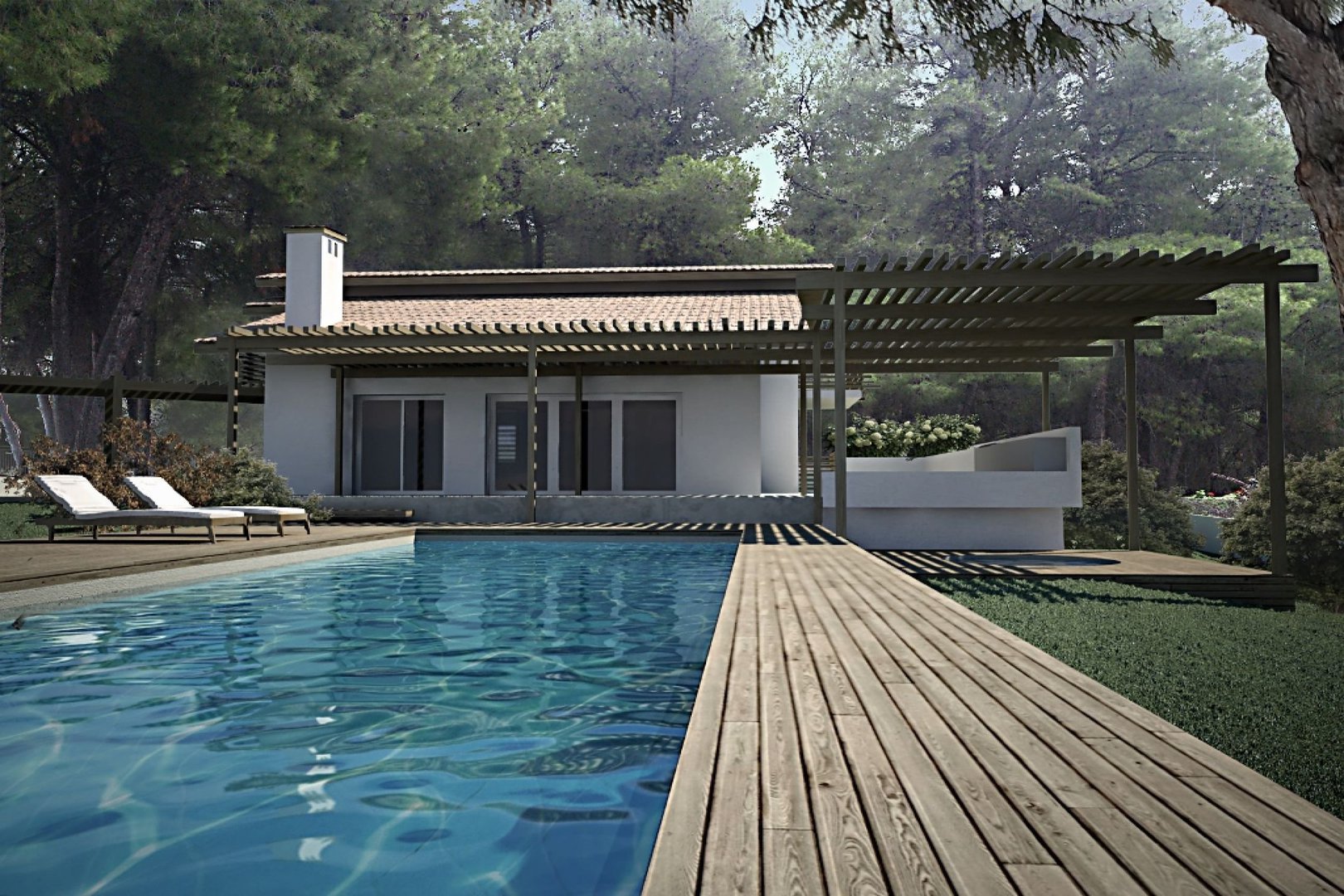 Super luxurious detached villa in Kassandra, Halkidiki, built in the middle of a pine forest, with amazing view to the sea. It consists of three levels of total floor area 330 sqm and has six bedrooms, three living rooms, two kitchens, playroom, four bathrooms and o WC. It is fully furnished and has a lovely garden. Specifically, the semi-basement (165 sqm) consists of a living room, kitchen, dining room, three bedrooms, two bathrooms and a playroom. The ground floor (115 sqm) has a living room with kitchen, a bedroom and a wc. The first floor (65 sqm) consists of a living room, two bedrooms and two bathrooms. There is a private swimming pool in the garden and an outdoors water massage/ Jacuzzi for 4 people. Extras: washing machine and dishwasher, refrigerator – freezer, oven, wood oven, microwave, espresso/cappuccino machine, High definition TV, air conditioning, cable and satellite TV, computer, DVD player, in-home theater, stereo system, high speed Wi Fi connection, video games console, safe. There are available towels and beach towels, shampoo and shower gel, three private sunbeds with an umbrella in front of the Sani Resort sandy beach and free entrance to Sani Resort. The house can accommodate up to 12 people.