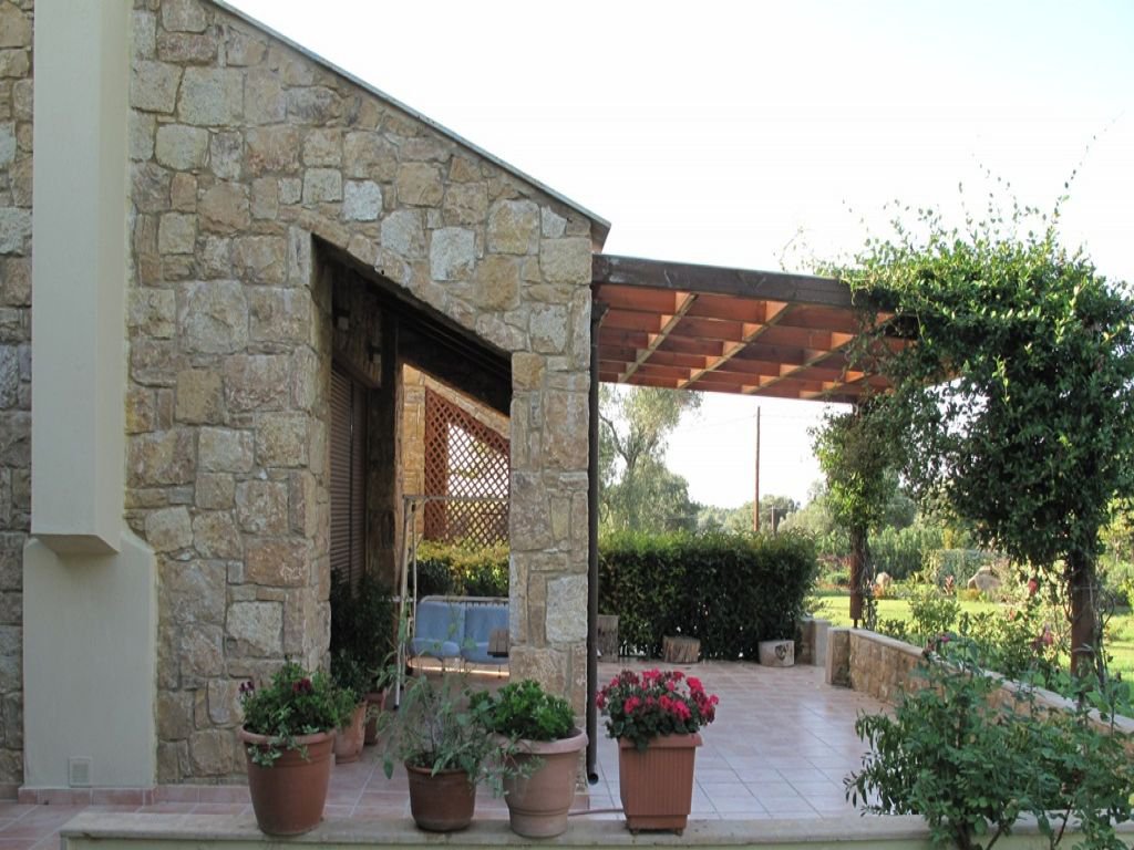 Three storey, luxurious villa in Kassandra, Halkidiki, 125 m2, with a large garden with automated watering. It has three rooms, three bathrooms, a cozy living room with a fireplace, external pool and two parking spots.
