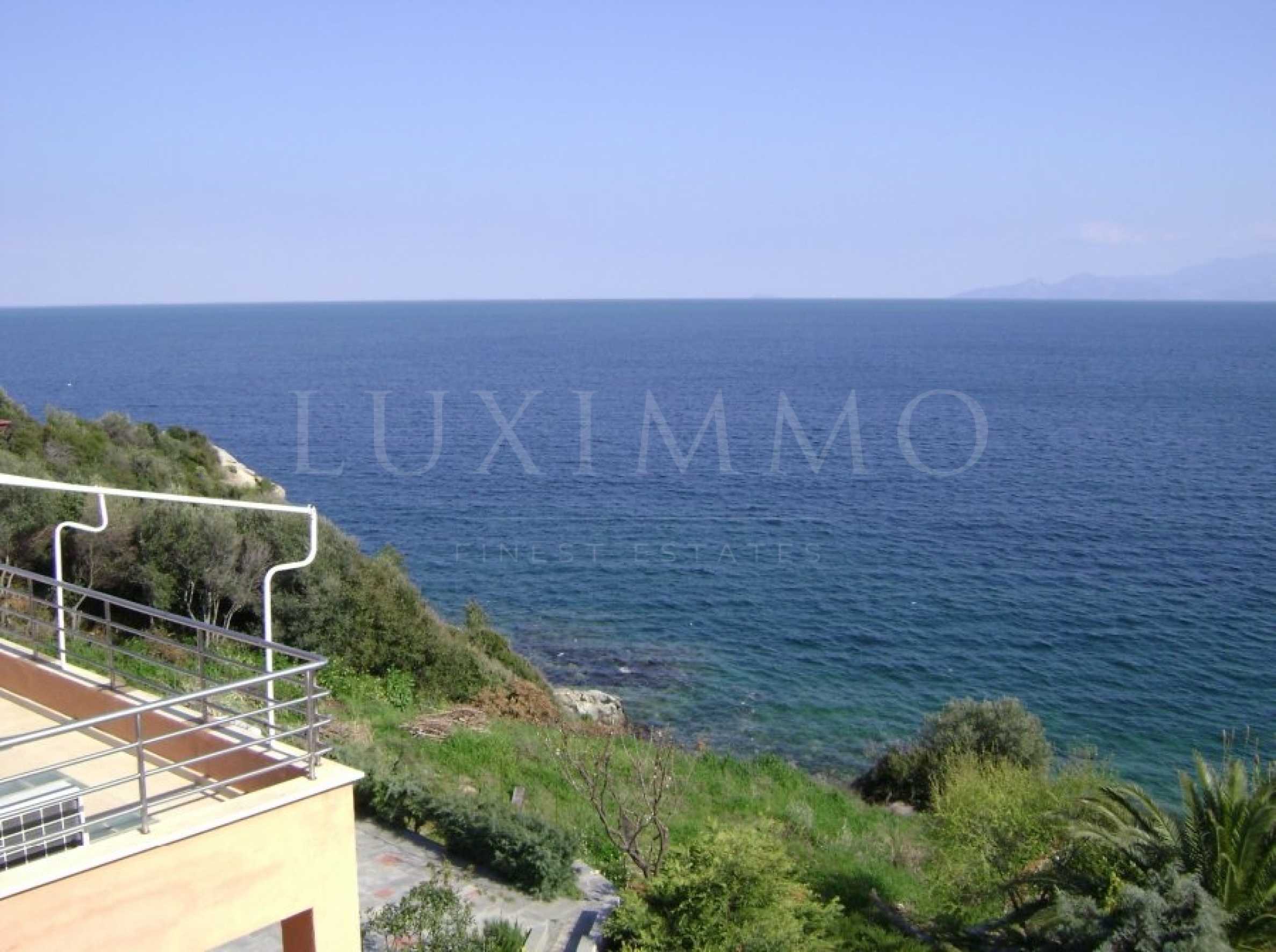 The levels are connected by an internal ladder. The ground floor has direct access to the courtyard of the house. The garden is planted with flowers and plants, and the alley made with stone slabs leads directly to the sea. The heating is done with central heating on oil, the floors and the stairs are made of marble. The window frames of the tall and spacious windows are aluminum, with external rolling shutters and awnings for the terraces.
