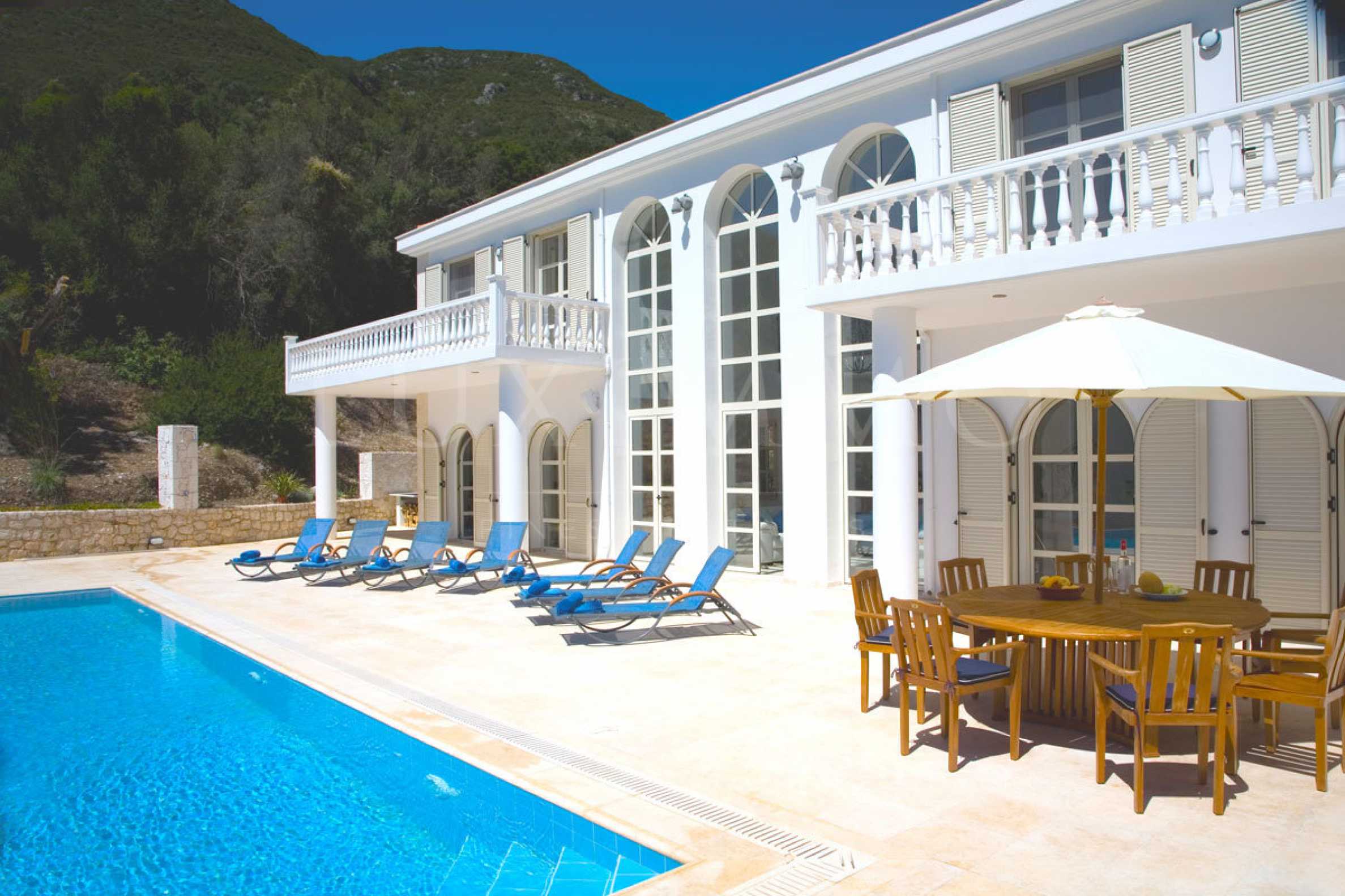 We are pleased to present you house with outstanding architecture is located in a superb position on the hillside of Vasiliki, enjoying panoramic views of the beautiful beach and the bay of Vasiliki, as well as the valley and the surrounding green mountains. It is located in a quiet area close to other luxury houses.