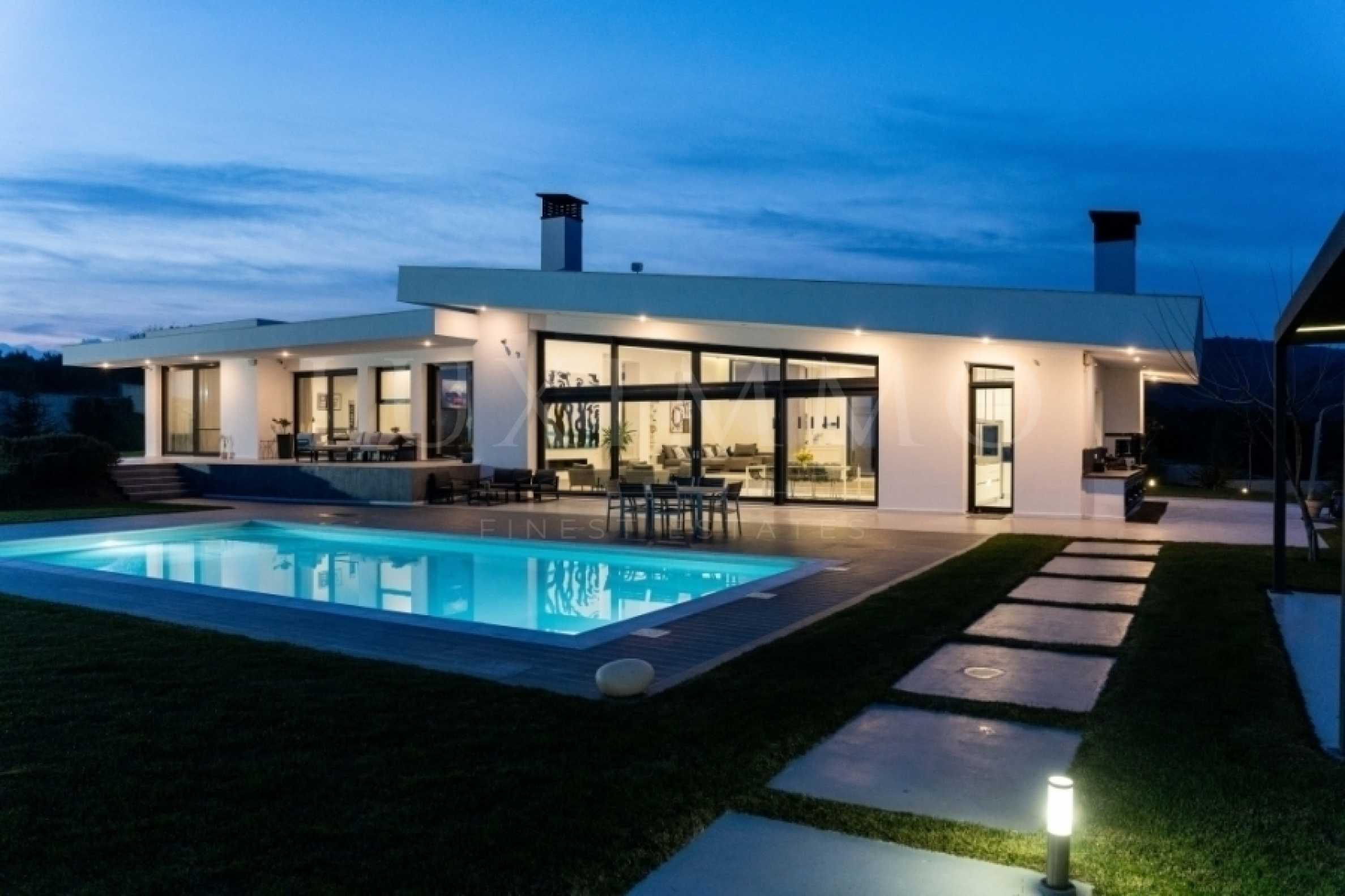 Unique villa 261sq.m with pool in an area of 7,581sq.m in Nea Kerdyllia, Serres. The luxury house is in a panoramic and private location, offering unrestricted views of Strymonikos gulf. It is developed on two levels. Entering the house we can see an open space of minimal aesthetics, where the living room, sitting room and kitchen are located. The kitchen is stainless, has rich equipment, induction hobs and is made of selected construction materials. From the hall we move to the bright office as well as to the bedrooms. Specifically, the house includes a bedroom, a bedroom with its own bathroom and the master bedroom with two walking closets and bathroom and also a separate bathroom - wc. From the internal staircase we move to the lower floor that consists of a playroom, a bedroom, a bathroom, a laundry room and three storage spaces. This is an excellent construction with reinforced insulation and plasters, built-in gutters with drainage pipe, closed monitoring circuit, three-zone alarm system, fire detection system, speakers’ system, window shutters with remote control, triplex windows, underfloor heating system (DAIKIN), 3 a/c, boiler 150lt, pre-installation of solar water heater, pre-installation for roof garden. The surrounding area is dominated by the 55sq.m pool and the intense green element. It has 50 trees and 41 olive trees. In the area there is a comfortable kiosk as well as an outdoor kitchen with barbecue as well as a storage space - garage. The house has drilling, automatic watering system, two underground storage tanks of 60c.m and the pool has salt electrolysis. It is located 1700 meters from the coast and is south oriented. This unique home is synonymous with luxury, elegance, and comfort.Year of Construction: 2019