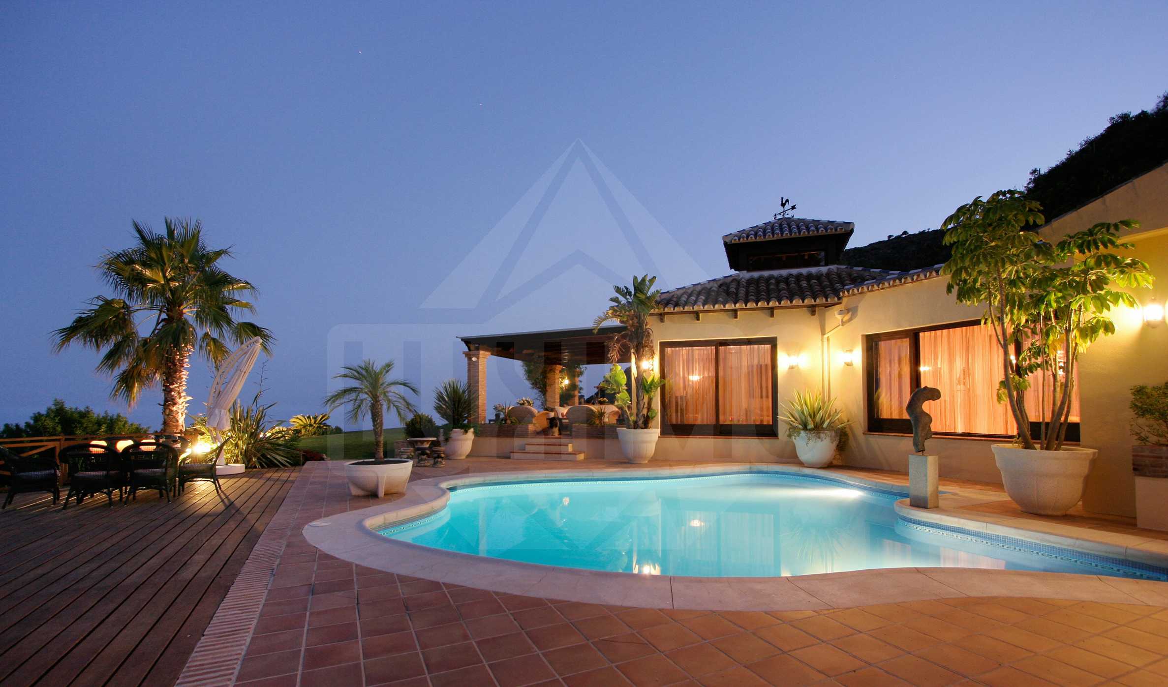 This estate is only 1300 meters away from the cosy village of Benahavis, and 6 km’s from the beach.A mountain- and countryside property on more than 11.000 square meters of land, about 275 meters above sea-level overlooking the mountains, the Mediterranean sea, the bay of Marbella and Puerto Banus.“Nido de Aguila” is set in a truly unique, one of a kind, location. With an incomparable combination of views and privacy at the same time. From the gate up, your own long drive-way leads you to the oasis called “Nido del Aguila”. There you find profound tranquillity, absolute and complete privacy, rural surroundings with great and spectacular views. No direct neighbours and “jet-set” Marbella and Puerto Banus at your feet.“Nido del Aguila” has a country -atmosphere, combined with all modern comfort. This villa, all on one level, consists of: entrance, study/TV-room, library, dining room, spacious kitchen, living-lounge (50 m2), three bedrooms and three bathrooms.Plans for a roofapartment (two bedrooms suite and bathroom) are ready and available.