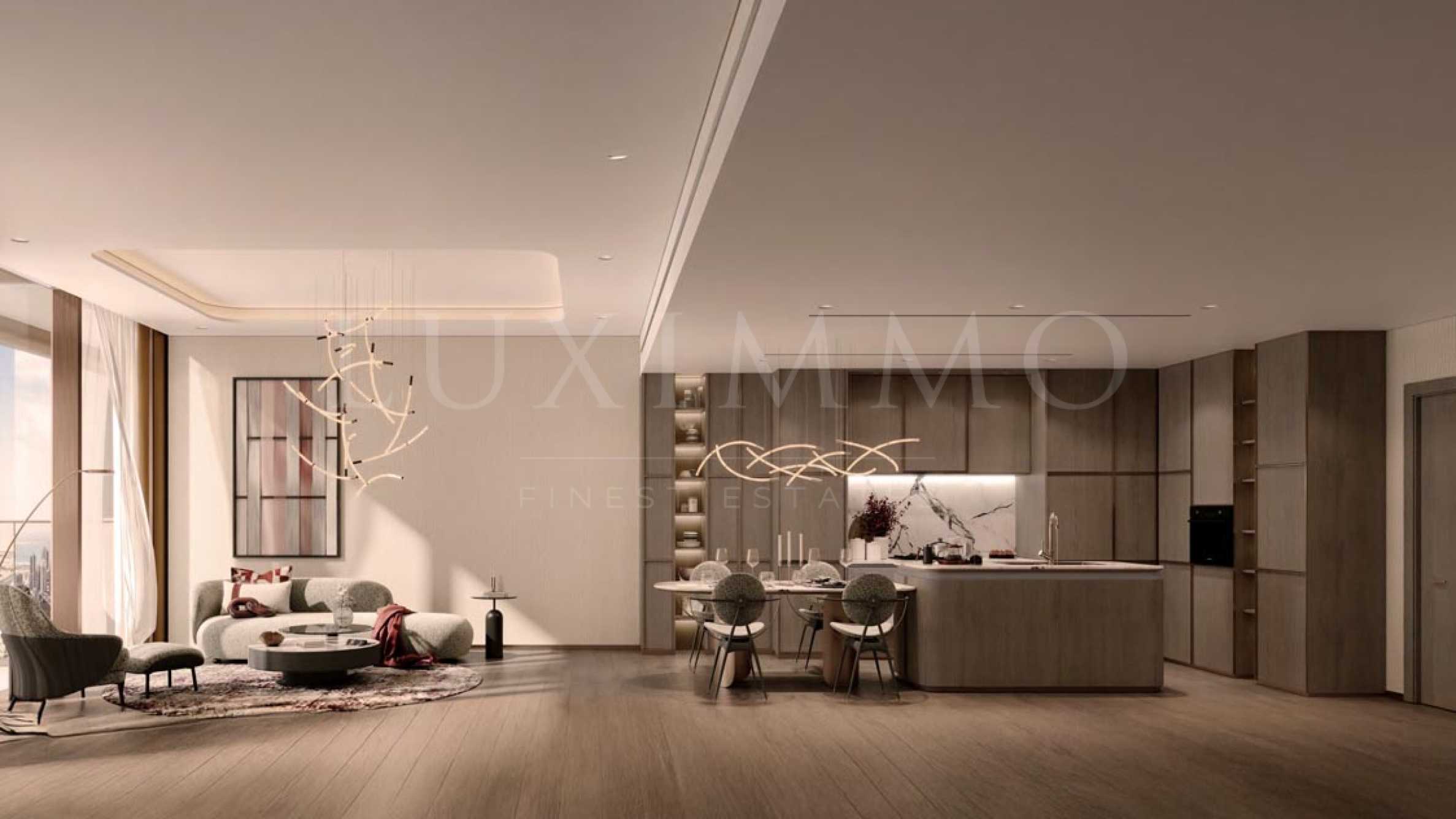 The Symphony’s fa?ade is striking from the first glance, combining metal accents, glass surfaces and spectacular decorative lighting, which transforms the building into a truly fabulous silhouette at night. Towering 40 floors, it unites retail, office and residential spaces in a way that guarantees silence and comfort for both residents and workers. The spacious lobby with double-height ceilings and a sophisticated interior with marble details welcomes every visitor with style and a sense of prestige.