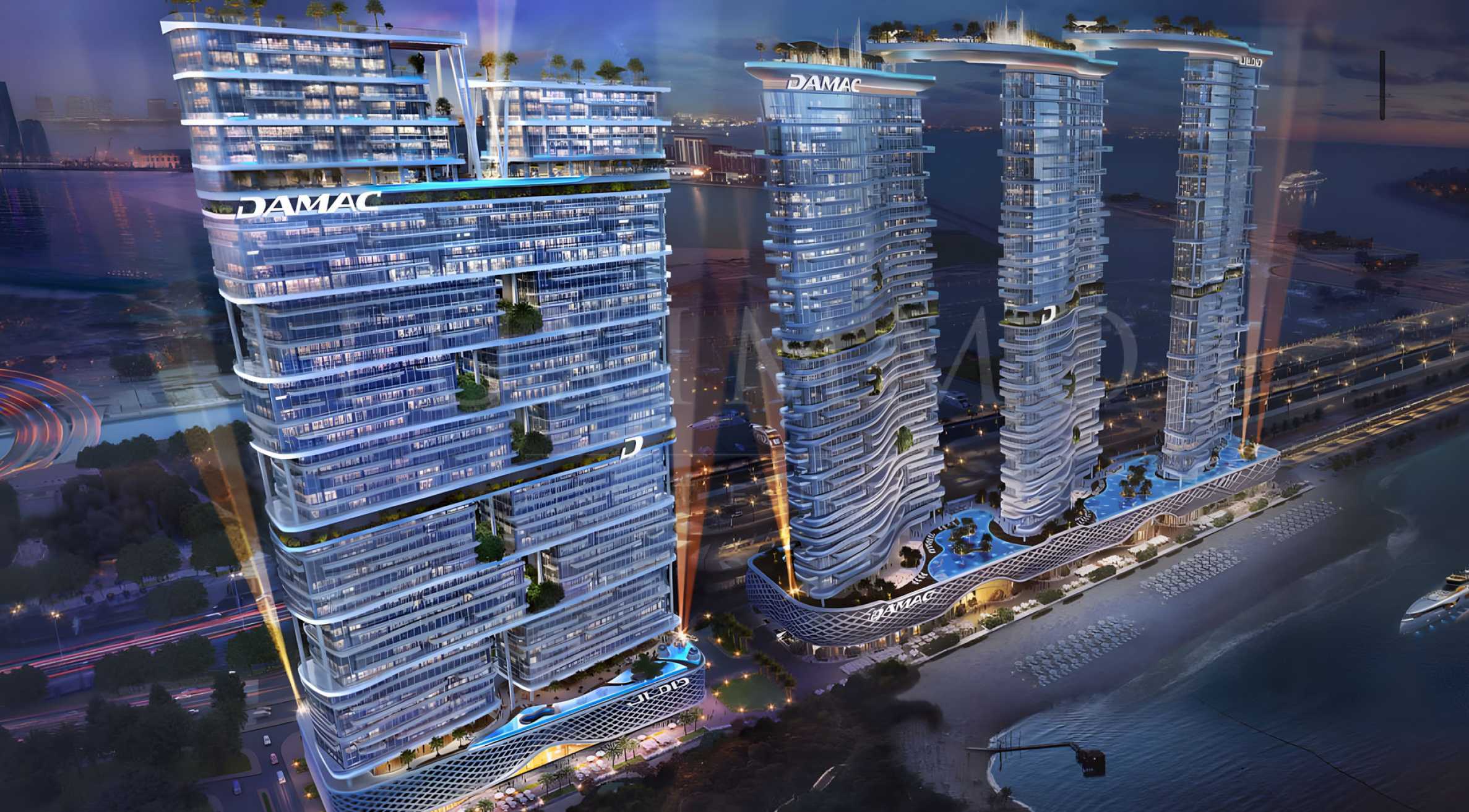 Damac Bay 2 is a luxury residential project in Dubai Marina developed by Damac Properties and Roberto Cavalli. It consists of two buildings offering picturesque views of Dubai and the Arabian Gulf. The towers are 26 and 19 stories high, and residents can enjoy a variety of premium facilities such as a temperature-controlled swimming pool, gym, gardens, shops and restaurants.
