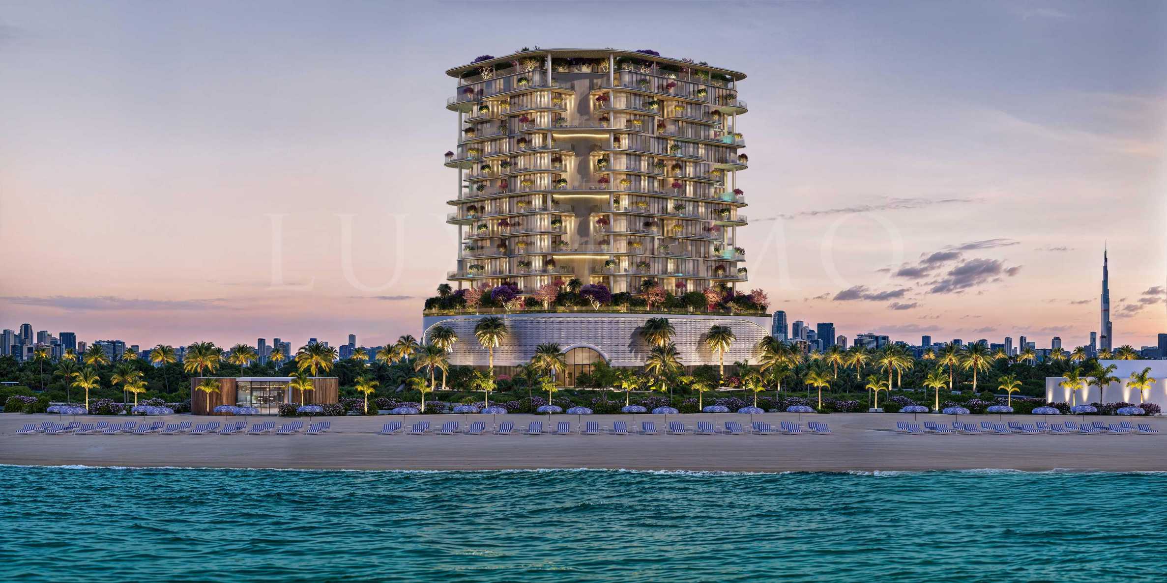 Villa Del Brunello is envisioned as a residence where every detail is shaped by a master’s hand, transforming each element into art. Rising across 12 floors, the building blends harmoniously with the area’s low-rise architecture, while offering breathtaking views of the sea, the bay, and the skyline of Downtown Dubai. The architectural concept is truly visionary – a composition of glass, decorative vertical lines, and lighting designed to highlight the building’s most striking features.
