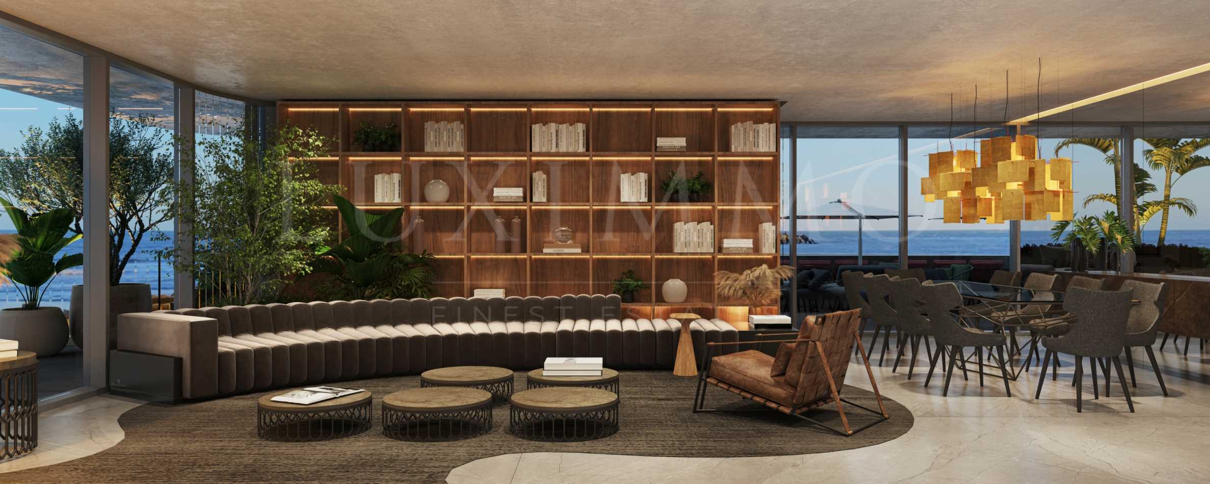 The interiors are designed with a focus on acoustic comfort, soft lighting and smooth transitions between materials. The design follows the characteristic Tonino Lamborghini style – bold, precise and elegant, without unnecessary ostentatiousness. Clean lines shape spacious volumes in which light moves freely on embossed surfaces and carefully selected finishes. The warm neutral color palette, complemented by subtle metallic accents, harmonizes with the coastal environment and emphasizes the recognizable character of the project.