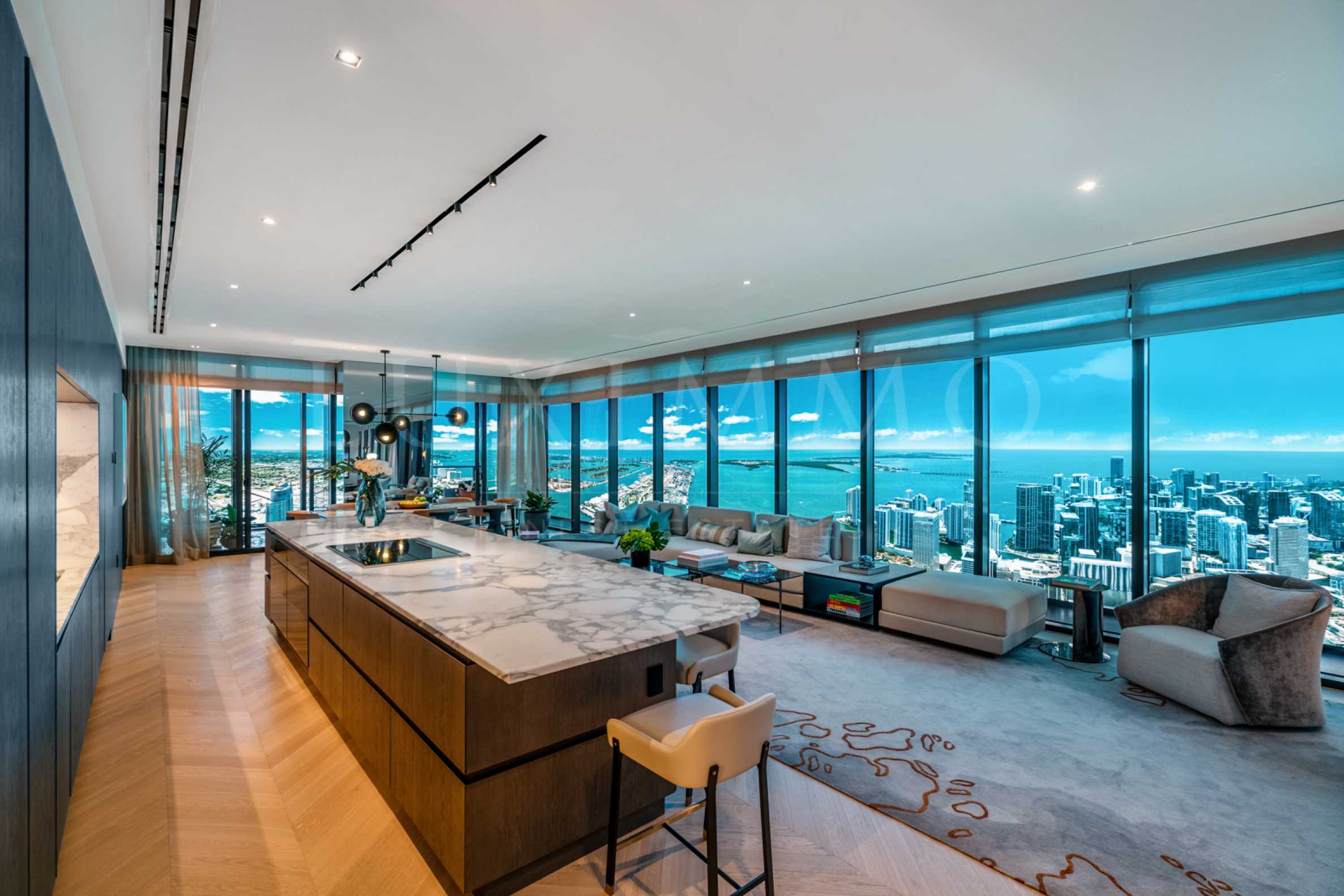 Like every detail in the building, the apartment that we have chosen to present to you has been meticulously designed down to the smallest detail, in order to provide a pleasant and peaceful atmosphere for its residents with the characteristic touch of the brand. The apartment is located in the sixth cube of the building and rises high above the other buildings in the city, providing incredible views of both the ocean and the city skyline. With its impressive 321.07 sq m of area and with ceiling heights of over 3 meters, the apartment creates an incomparable feeling of spaciousness and breadth. It is reached through a private foyer, which not only enhances the feeling of exclusivity, but also guarantees the security and tranquility of the residents. The layout of the apartment includes a living room with kitchen and dining room, two bedrooms with their own wardrobes and bathrooms, two bedrooms with bathrooms, a separate guest toilet and a spacious terrace, revealing beautiful views of the ocean.